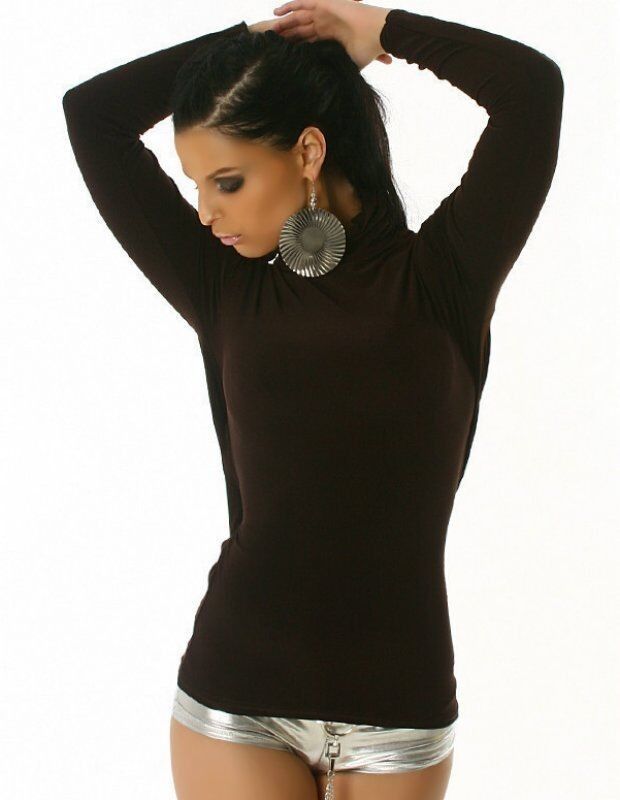 SeXy Damen Rücken offen Wasserfall Shirt Rollkragen Rolli Top braun 34/36/38 NEU
