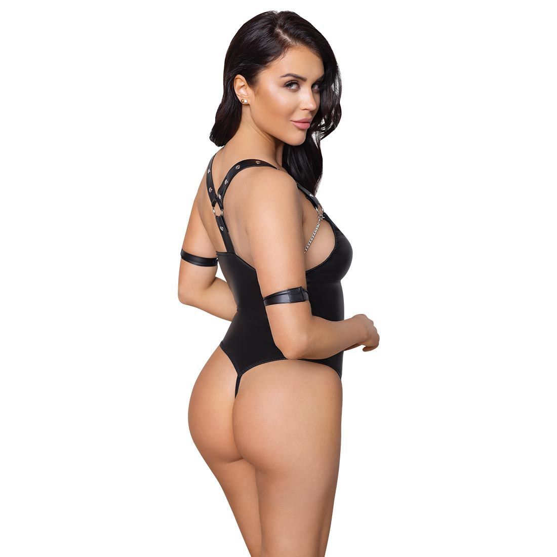 Sexy Damen String-Body S-XL Schritt offen + Fesseln + 3 Ringe Club Party "Freny"