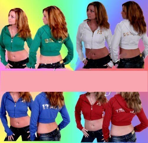 Sexy Damen Zipper Weste Bauchfrei Jacke Retro Länder Print Hoody 32 34 36 38 40