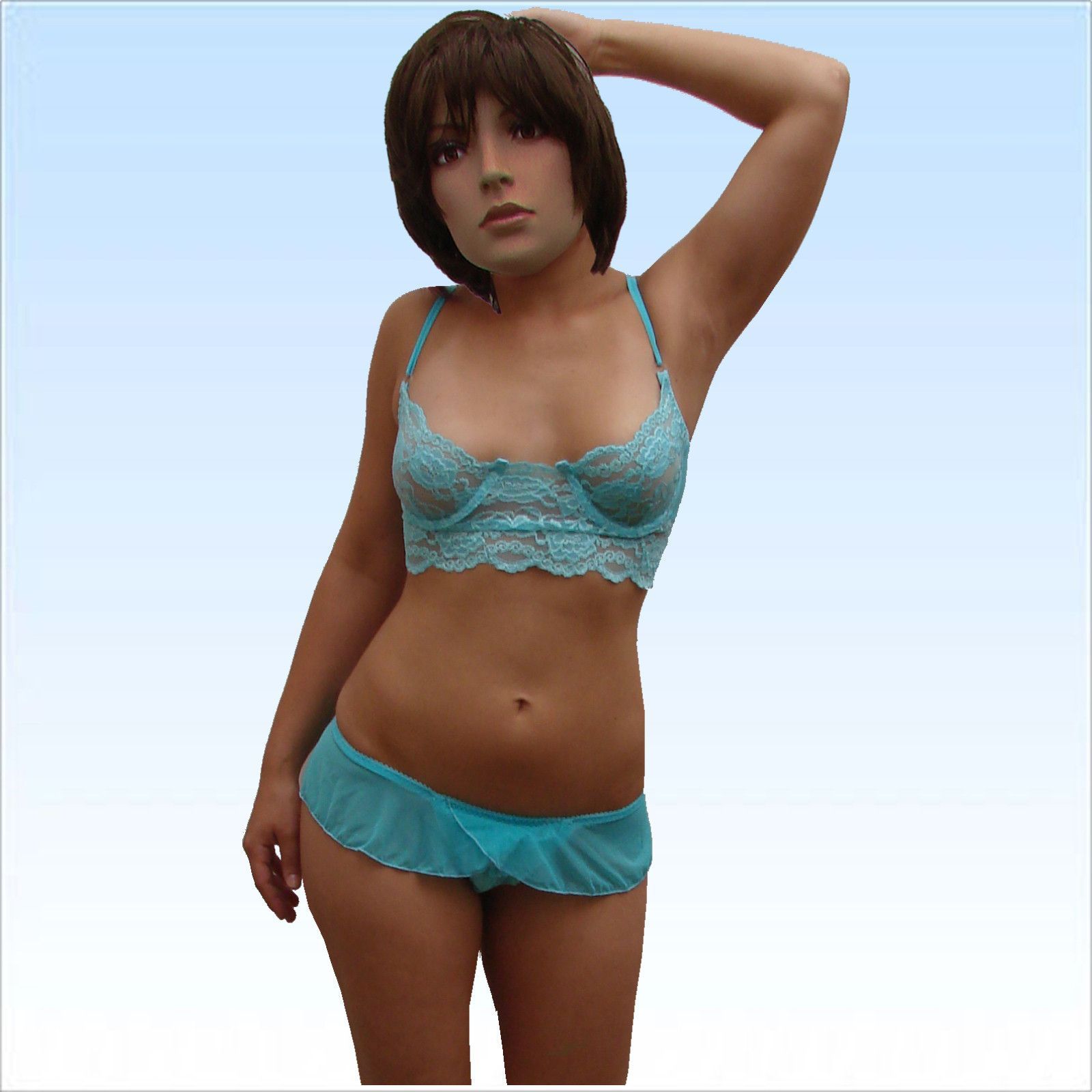 Sexy Dessous blau Gr. XS - S Dessousset Nachtwäsche BH Slip Rüschen Reizwäsche