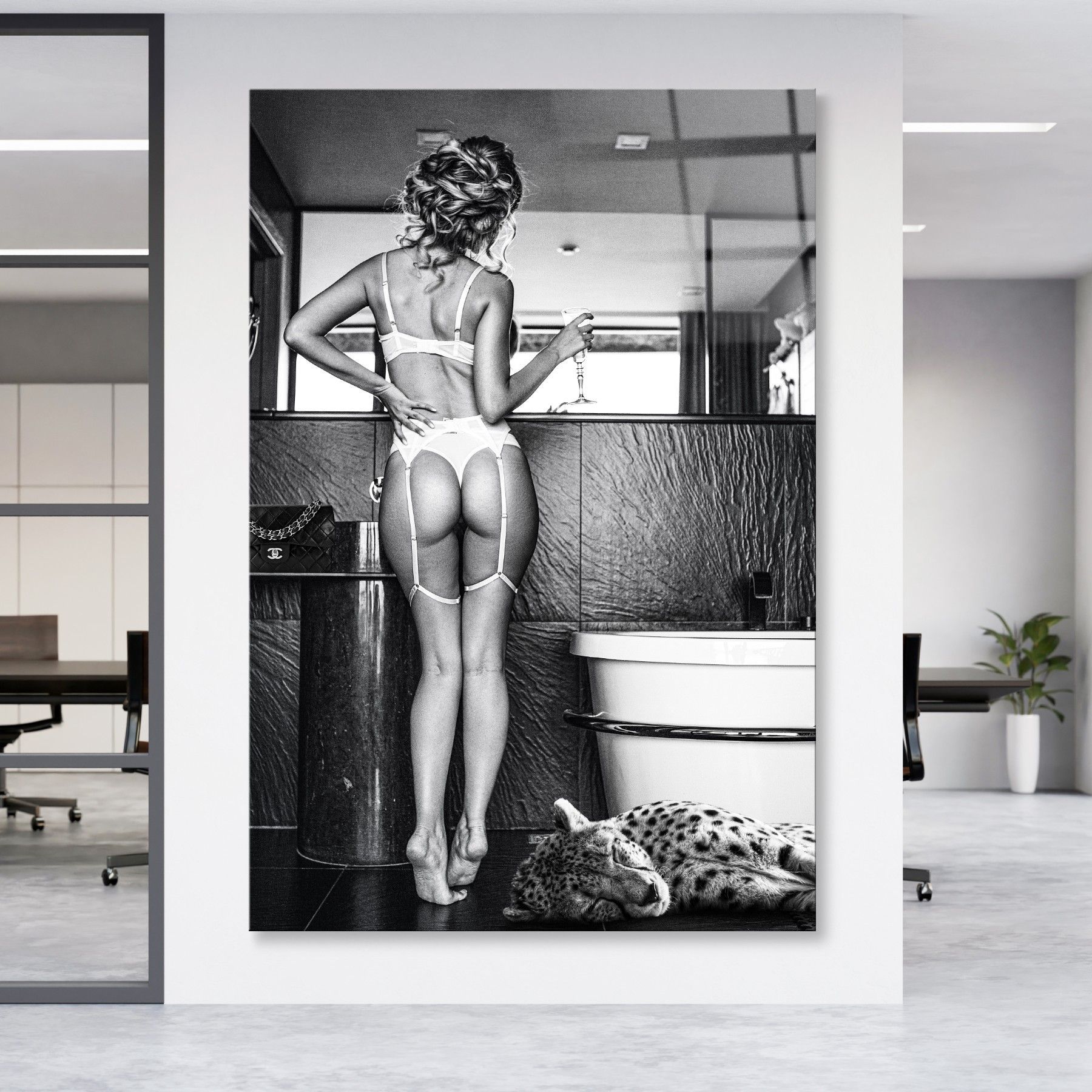 Sexy Frau Leopard Luxury Leinwand , Acrylglas Aluminium , Leinwand , Poster, Wandbild