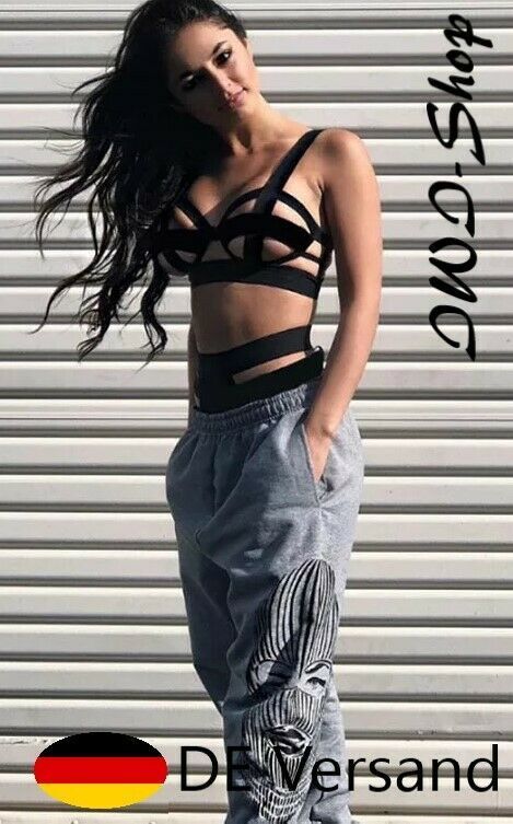 Sexy Hebe BH Set Offen Bandage Panty Push Up Bikini sexy Dessous Reizwäsche Schwarz