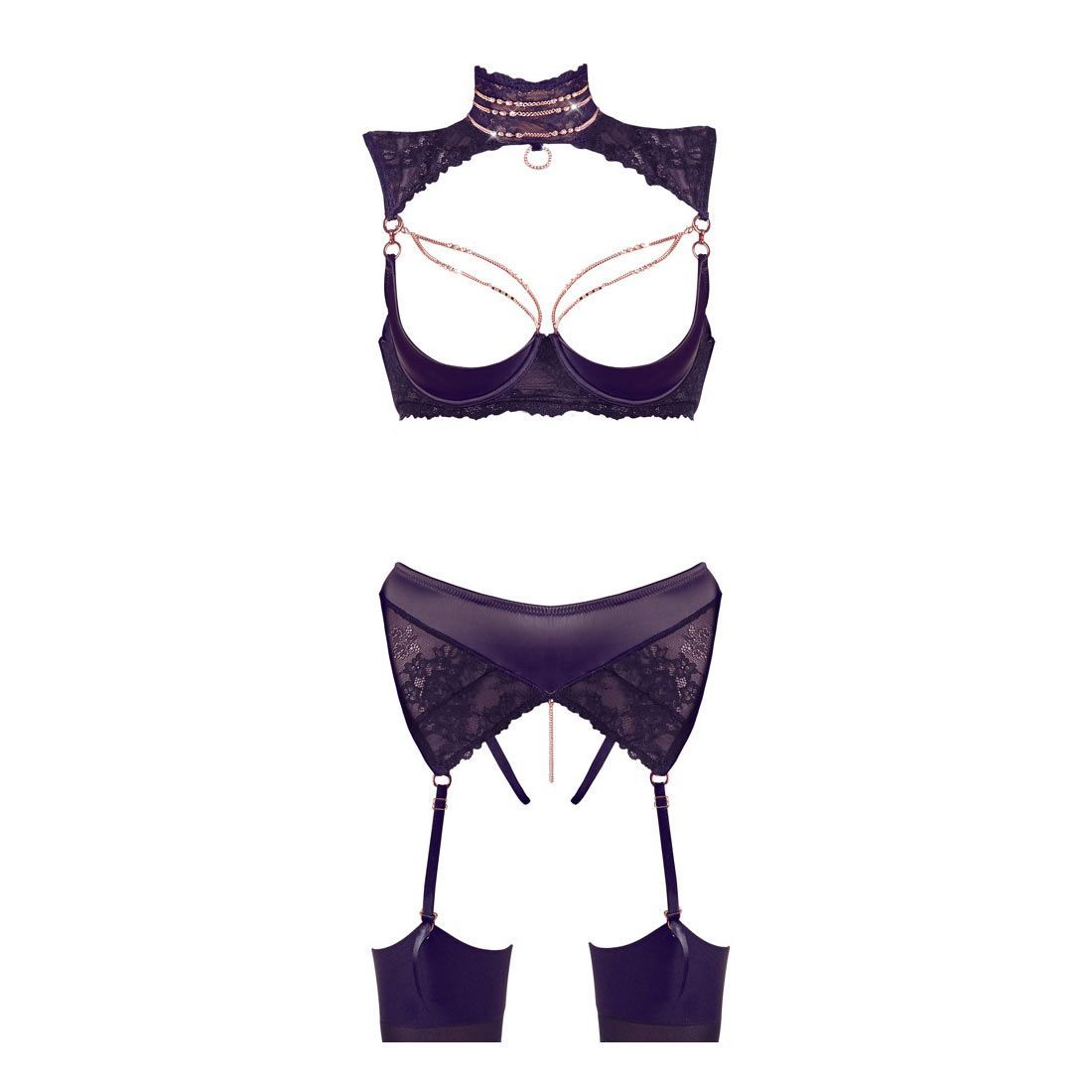 Sexy Hebe Straps-Set S M L XL Spitze Strass offen Geschenk dessous "Sharise"