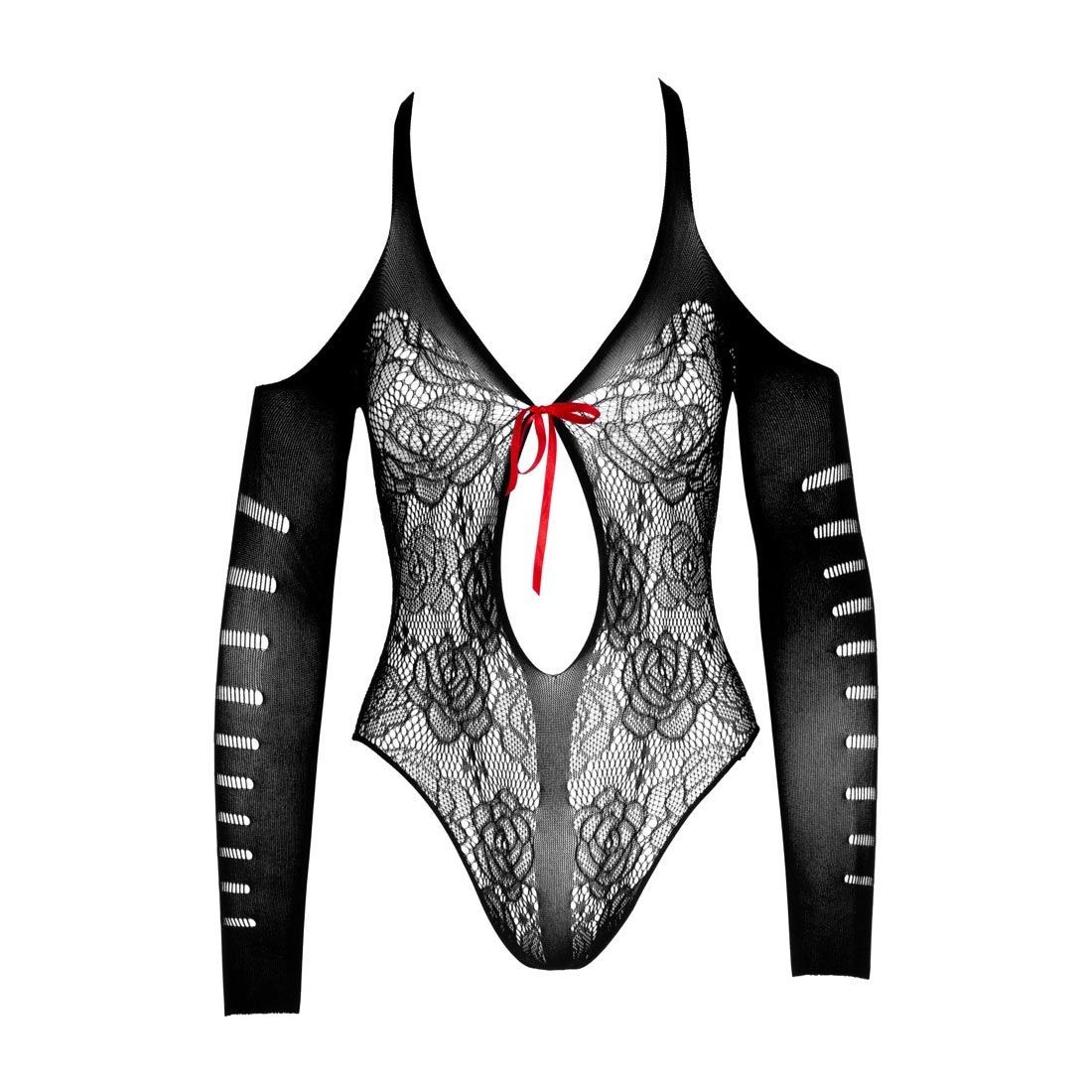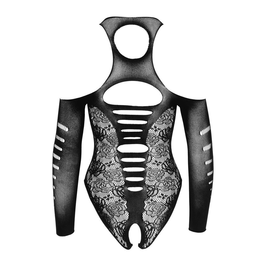 Sexy Langarm Body S-L Schritt offen aus Spitze Nahtlos Cut-outs Einteiler "Aria"