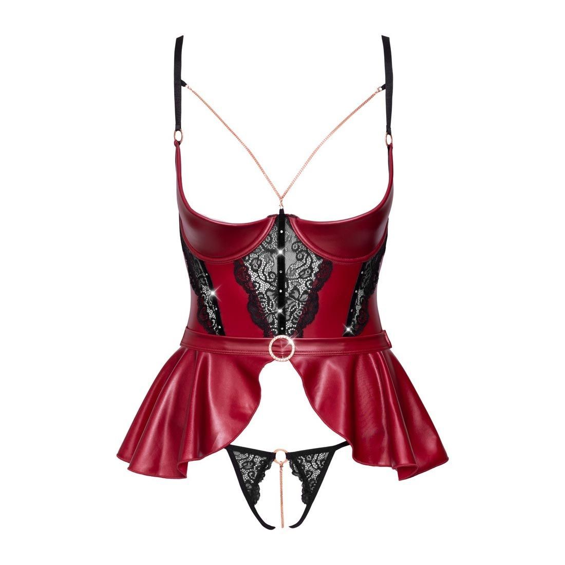 Sexy Longline-Hebe BH-Set rot 75B-85C Schritt offen + Mattlook + Strass "Honey"