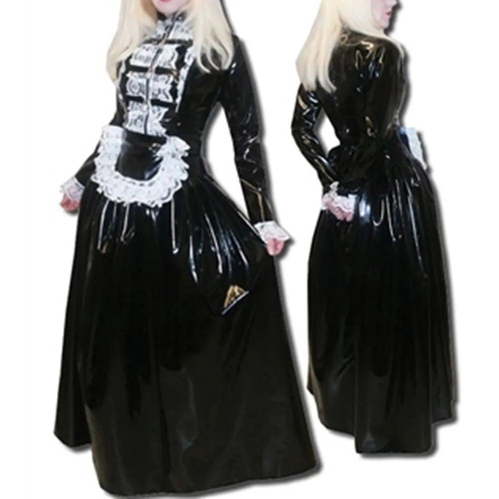 Sexy Maid Kostume fur Cosplay Langes Kleid Abschliebbar Stand NeckMaid Uniform