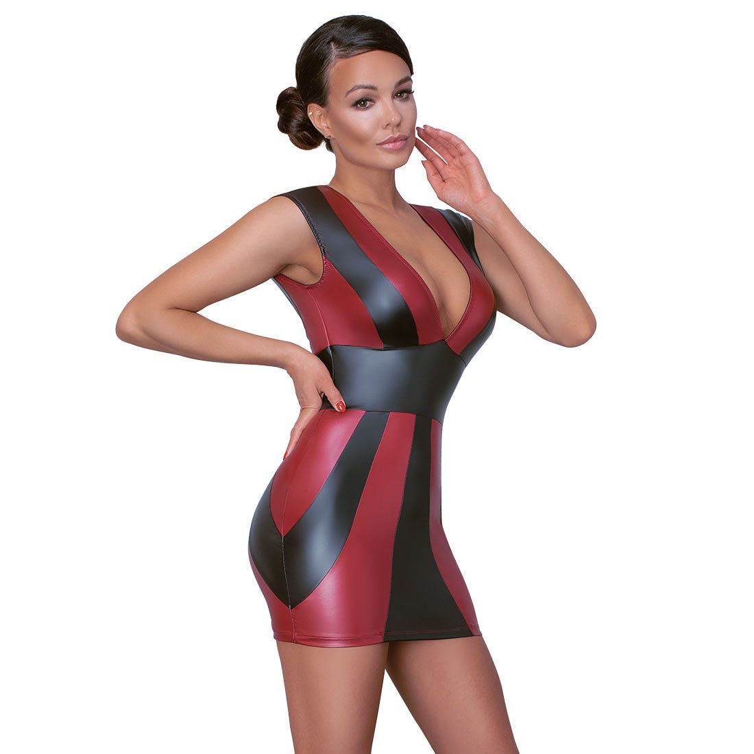 Sexy Mini-Kleid S M L XL rot schwarz 2-farbiger Matt-Look Party Club "Valentina"