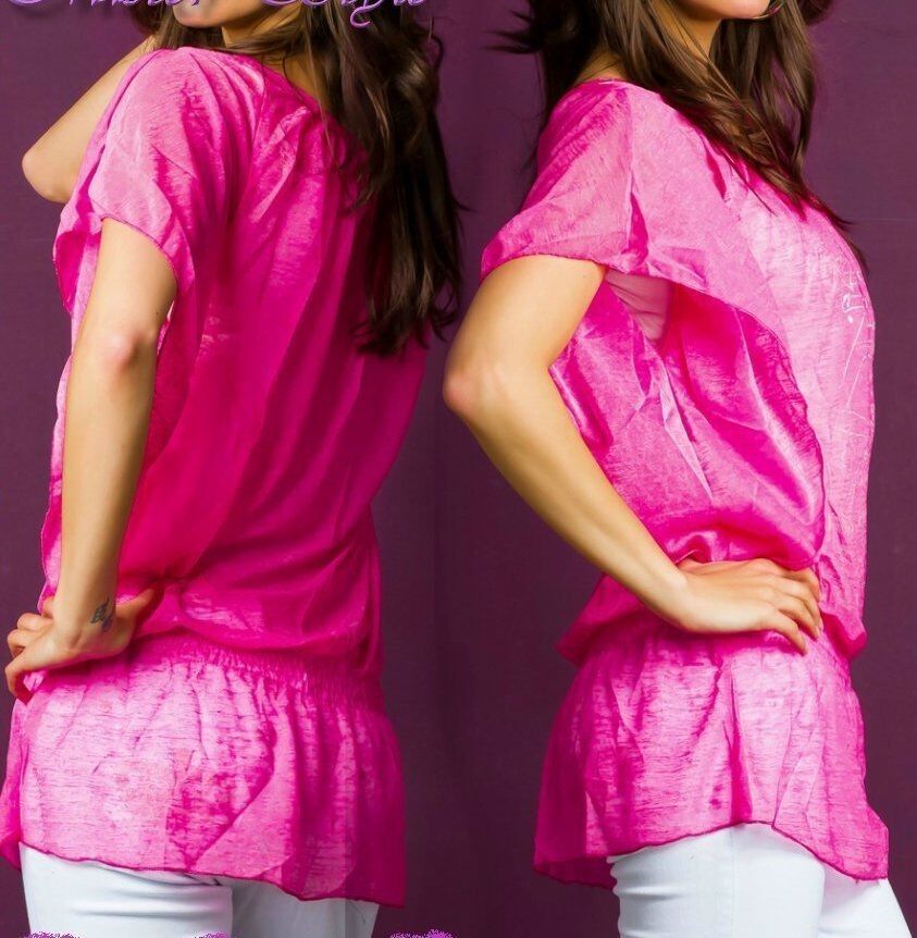 Sexy Miss 2 Teiler Träger Top Long Bluse Shirt silber print 34/36/38 pink NEU
