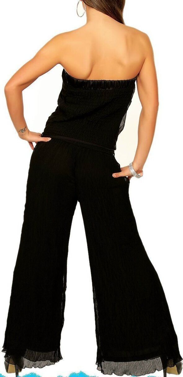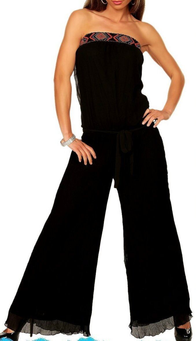 Sexy Miss Bandeau Plissee Overall Hose Einteiler Glam Perlen 34/36 36/38 schwarz