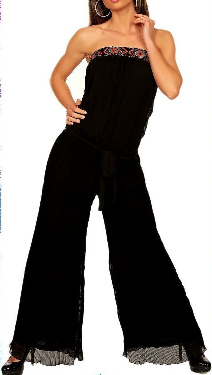 auffälliger Overall gerade Bandeau Dekollete Ausschnitt mit vielen Perlchen verziert Doppellagig Plissee taillierter Schnitt mit Taillen gummibund breites weites Bein elastisches Material Eye Catcher Pur Hot & Sexy In-Style Look _____________________________ Im Artikel steht Französische Größe M
