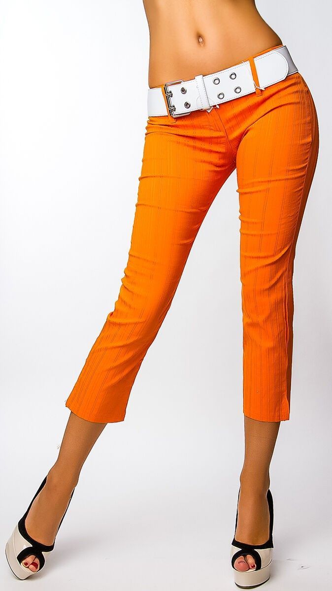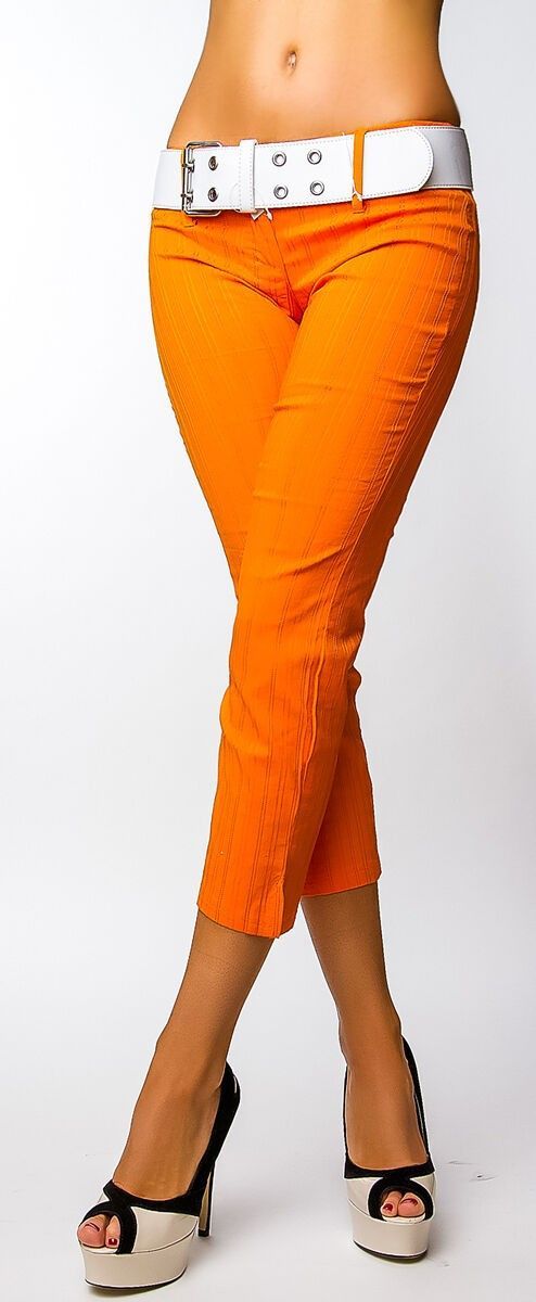 SeXy Miss Damen 7/8 Capri Sommer Hüft Hose LoW CuT NadelStreifen orange Gürtel