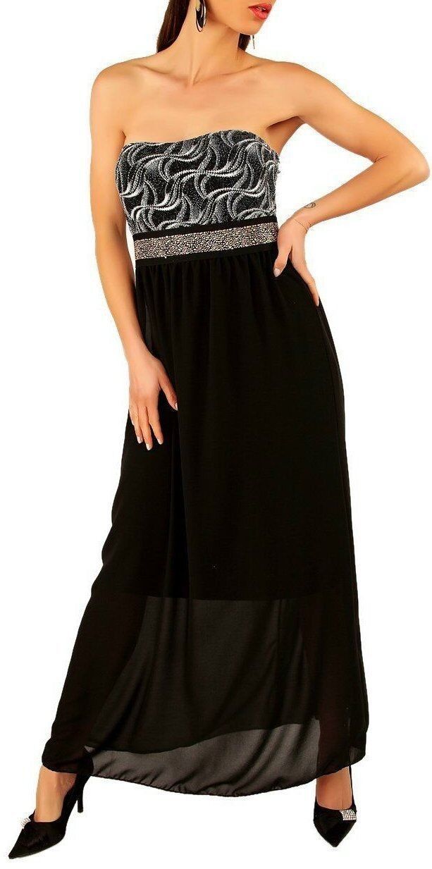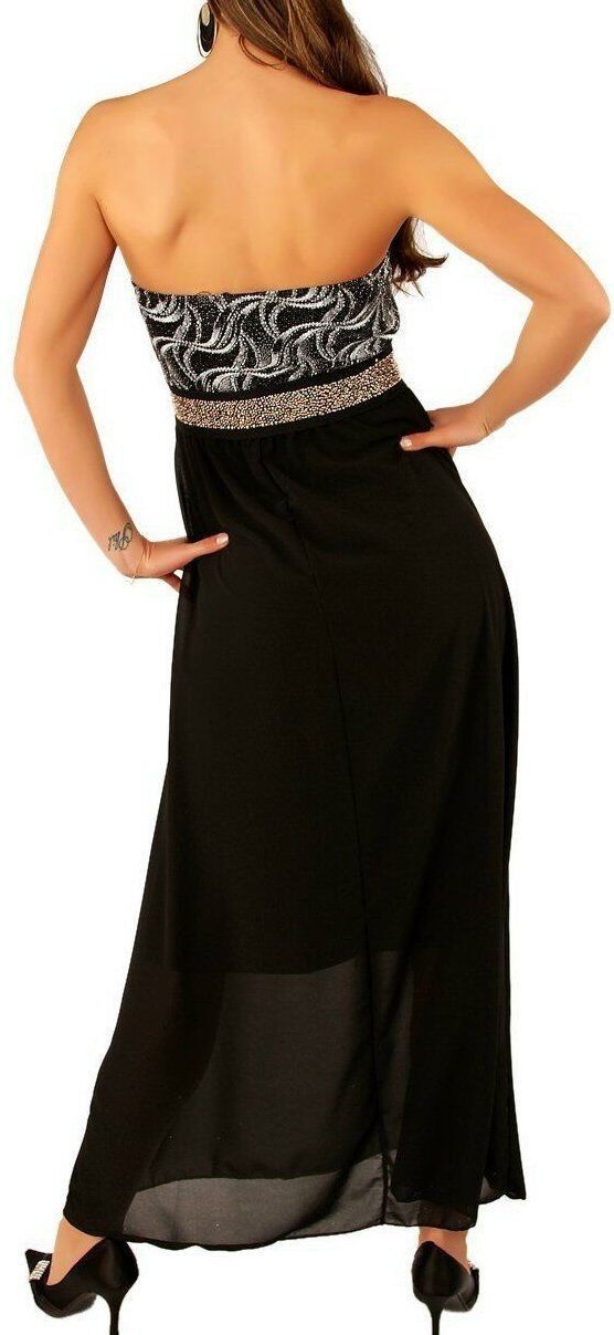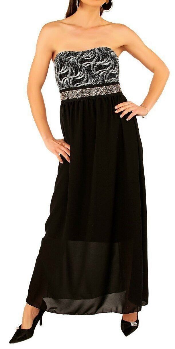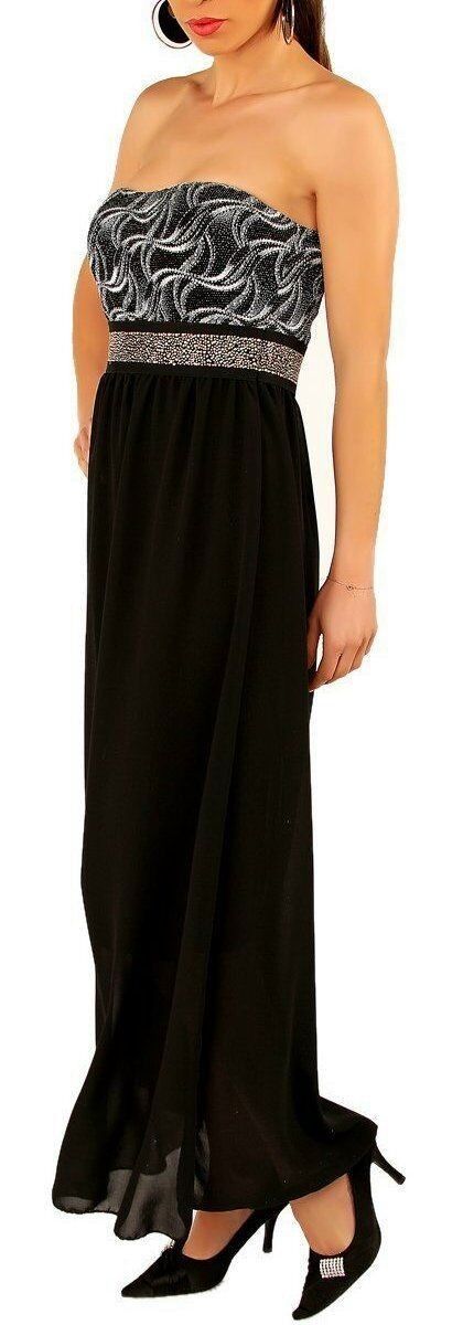 SeXy Miss Damen Bandeau Maxi Kleid Glitzer Dress lang 34/36/38 schwarz silber