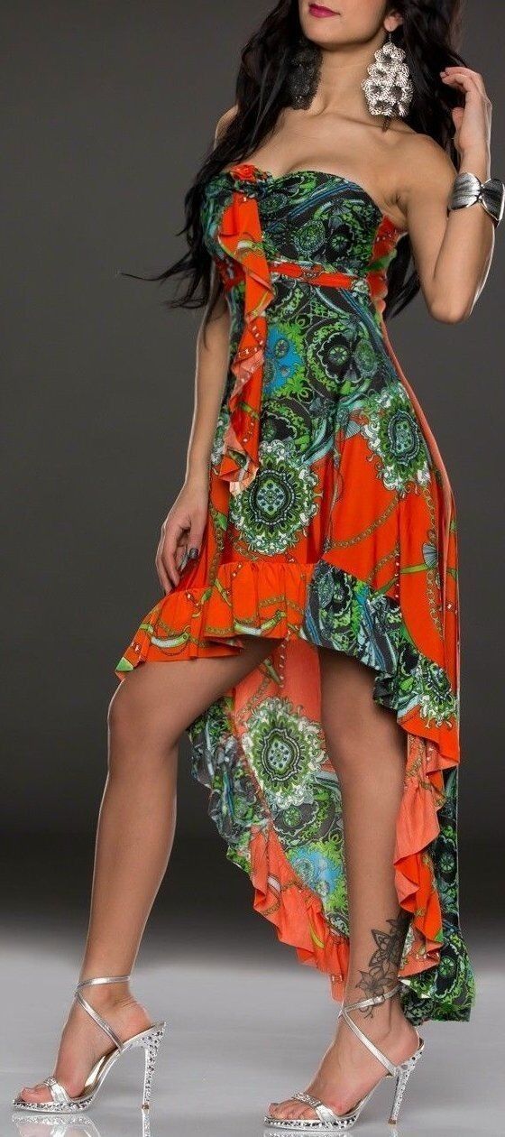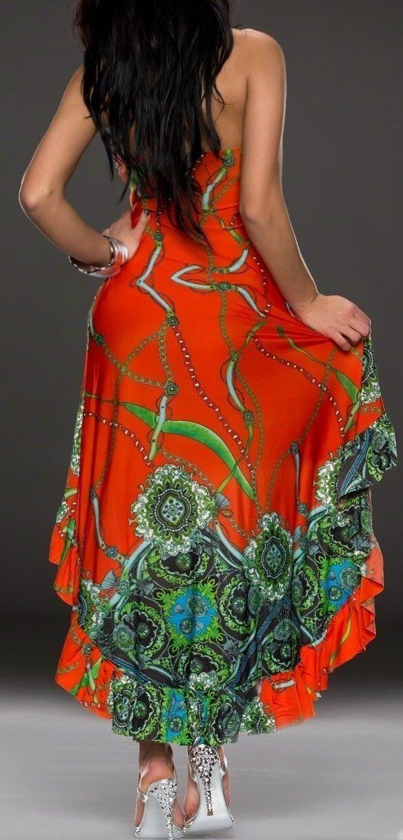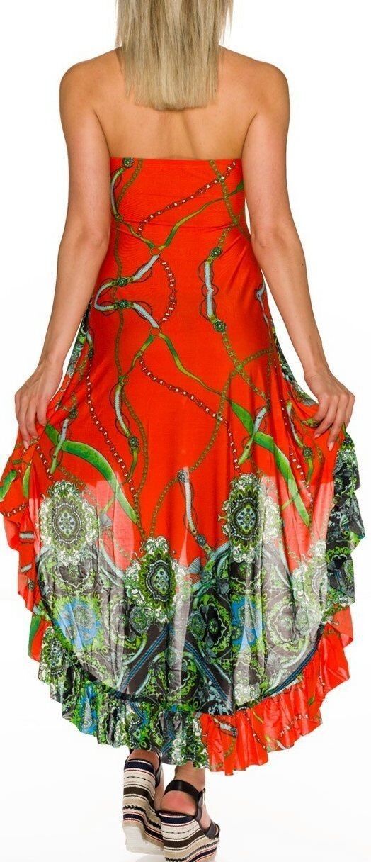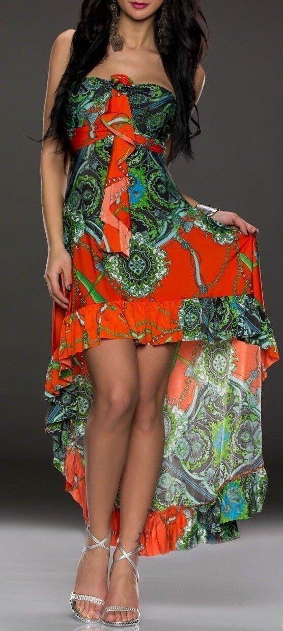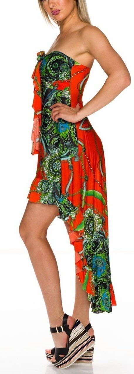 SeXy Miss Damen Bandeau Maxi Mini High Low Volant Kleid bunt 34/36 38/40 orange