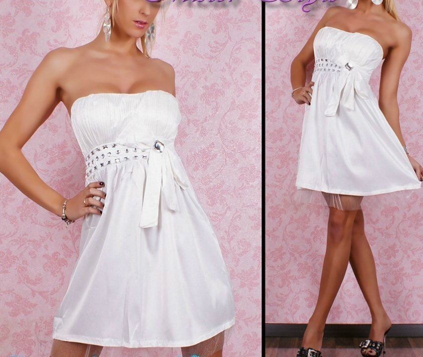 SeXy Miss Damen Bandeau Mini Kleid Steine Satin Dress S/ M 34/36 M/ L 36/38 weiß