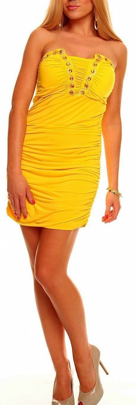 SeXy MiSS Damen Bandeau Push up Mini Kleid Party Dress Glam Steine 34/36/38 gelb