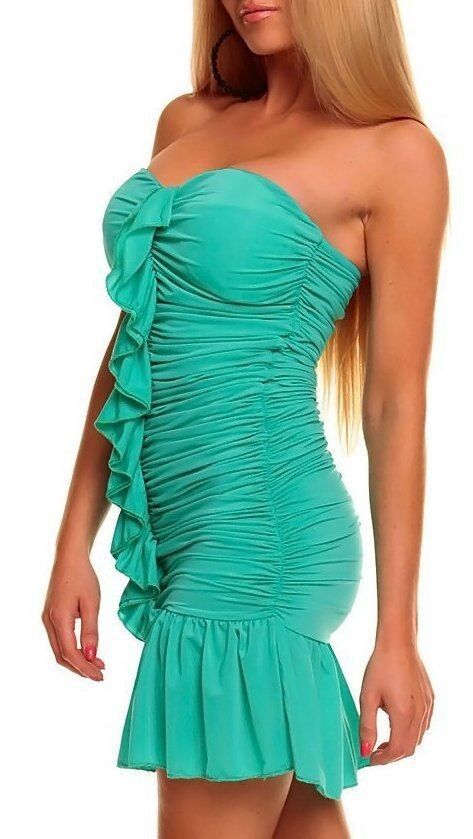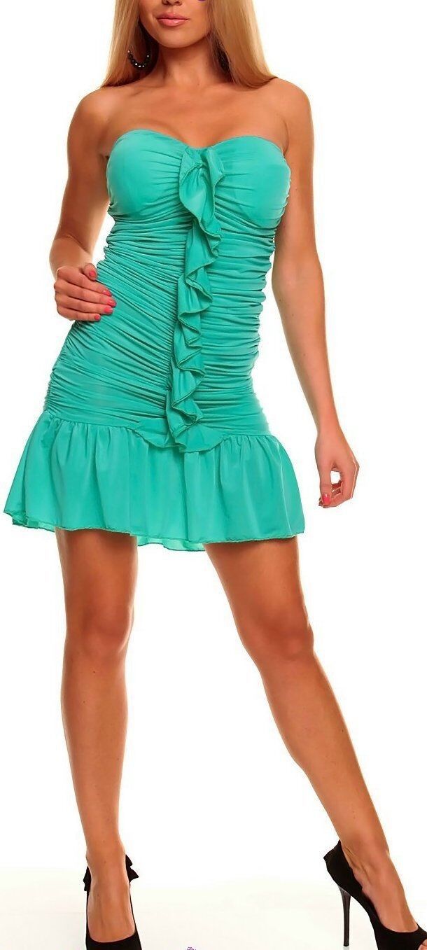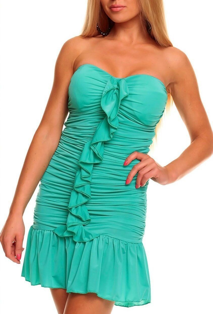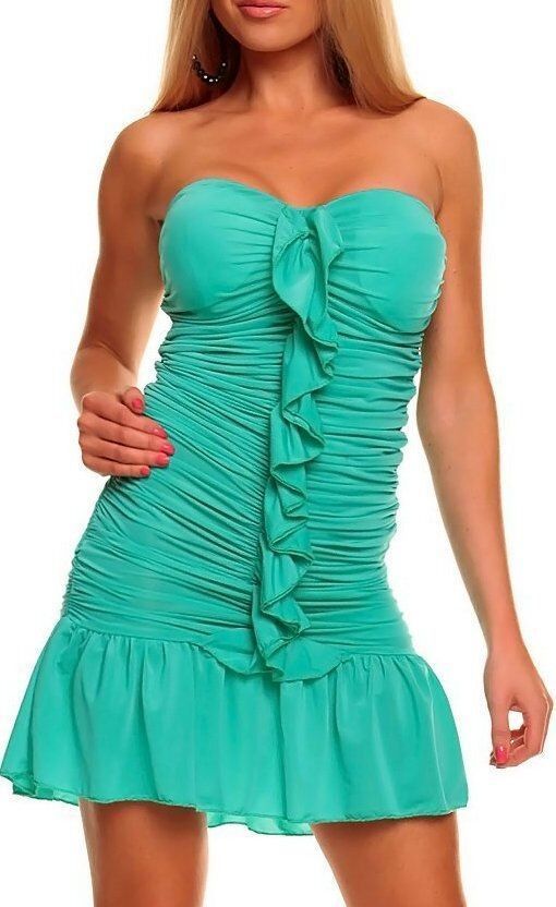 SeXy MiSS Damen Bandeau Push up Volant Mini Kleid Party Dress 34/36/38 Grün Aqua