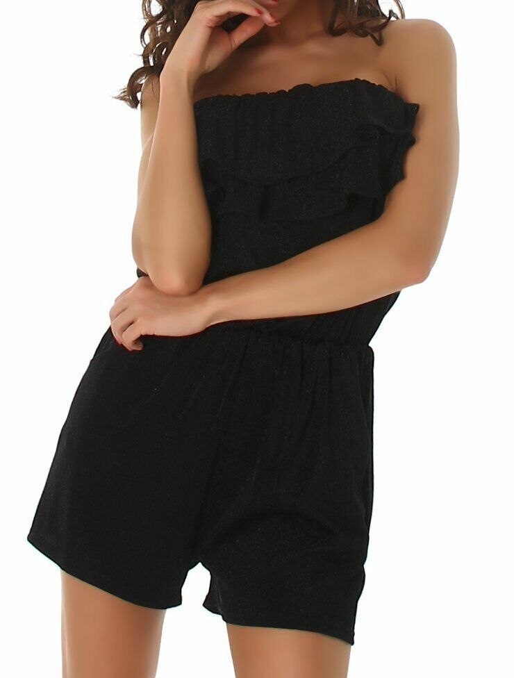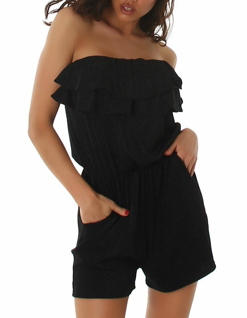 SeXy Miss Damen Bandeau Shorty Jumpsuit Kurz Overall Glitzer Lurex M 36 L 38 schwarz