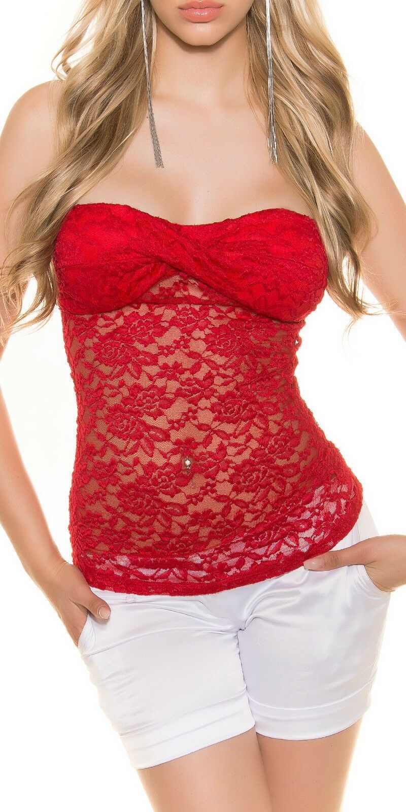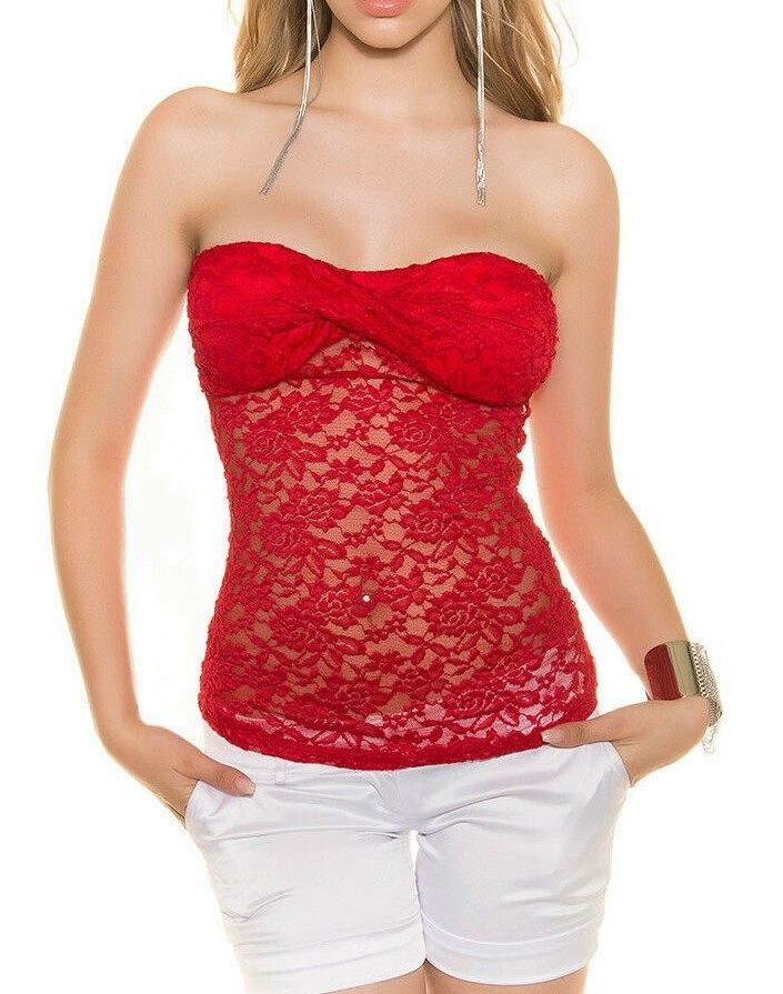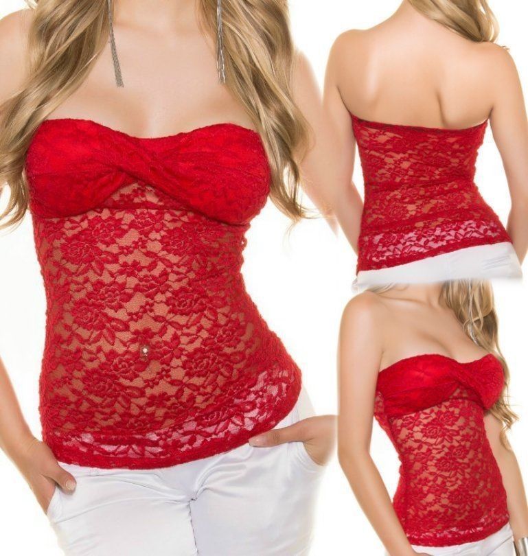 SeXy Miss Damen Bandeau Spitze transparent trägerlos Party Top 32/34/36 rot