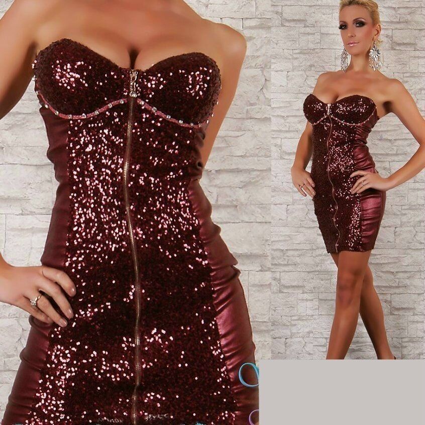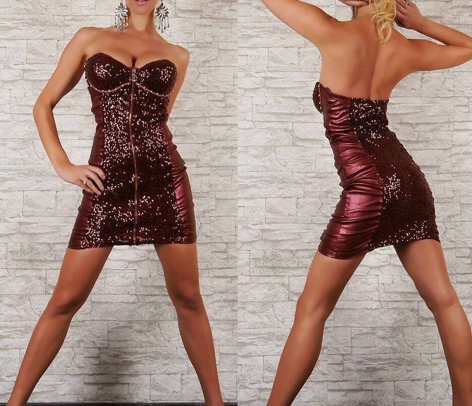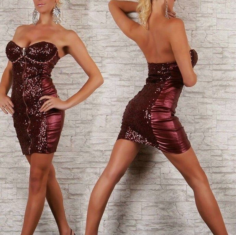 SeXy MiSS Damen Bandeau Zipper Mini Kleid B Rot Pailletten Dress S 34 M 36 L 38