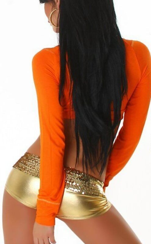 SeXy Miss Damen bauchfrei Girly Top Langarm V Shirt 32/34/36/38 orange gold NEU