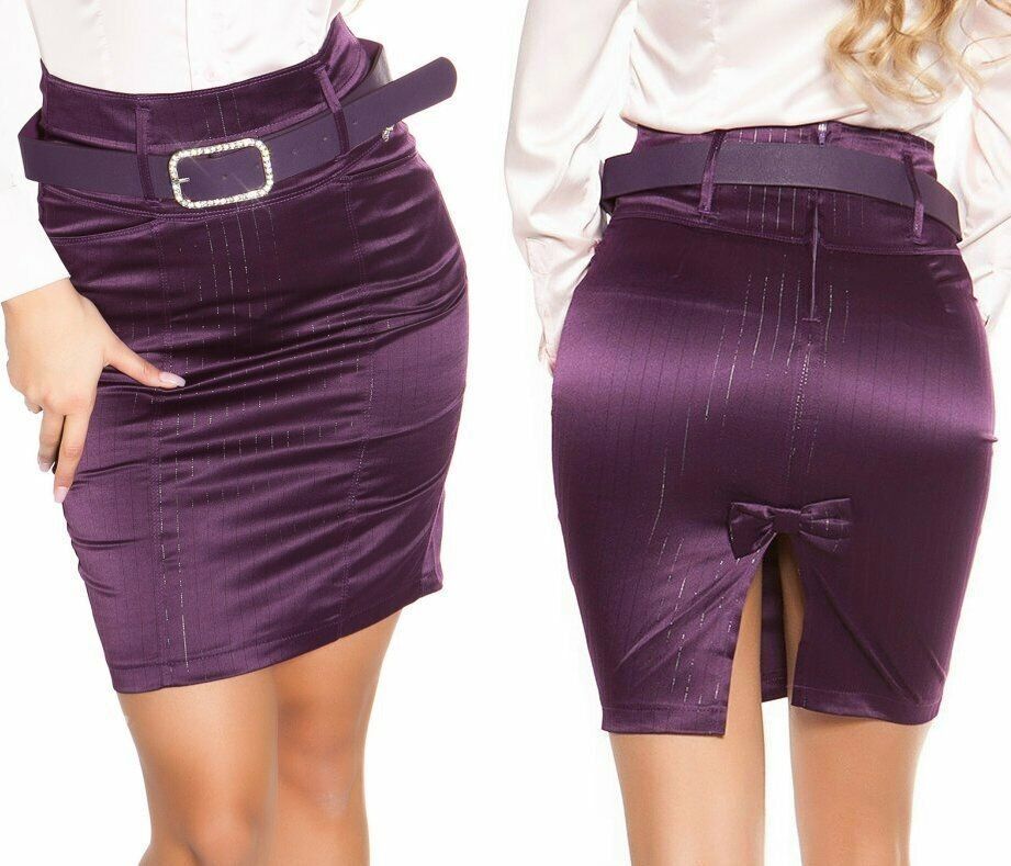 SeXy Miss Damen Business Pencil Bleistift Rock Gürtel Satin lila 34 36 38 40