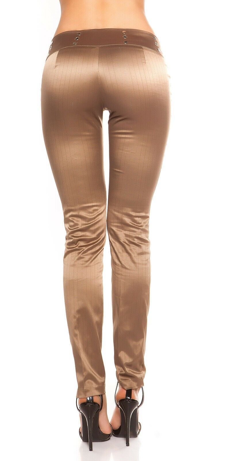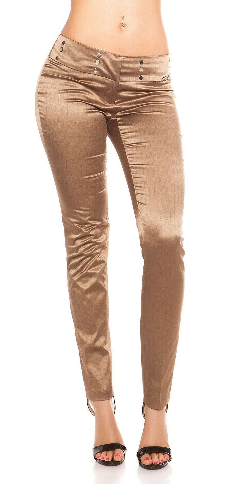 SeXy Miss Damen Business Satin Stoff Hose Nadelstreifen glanz 34 36 38 40 braun 01