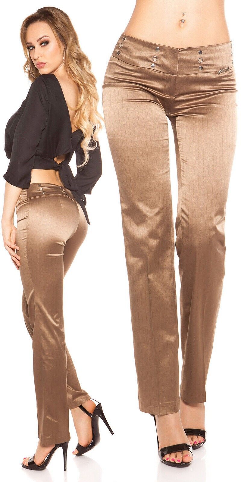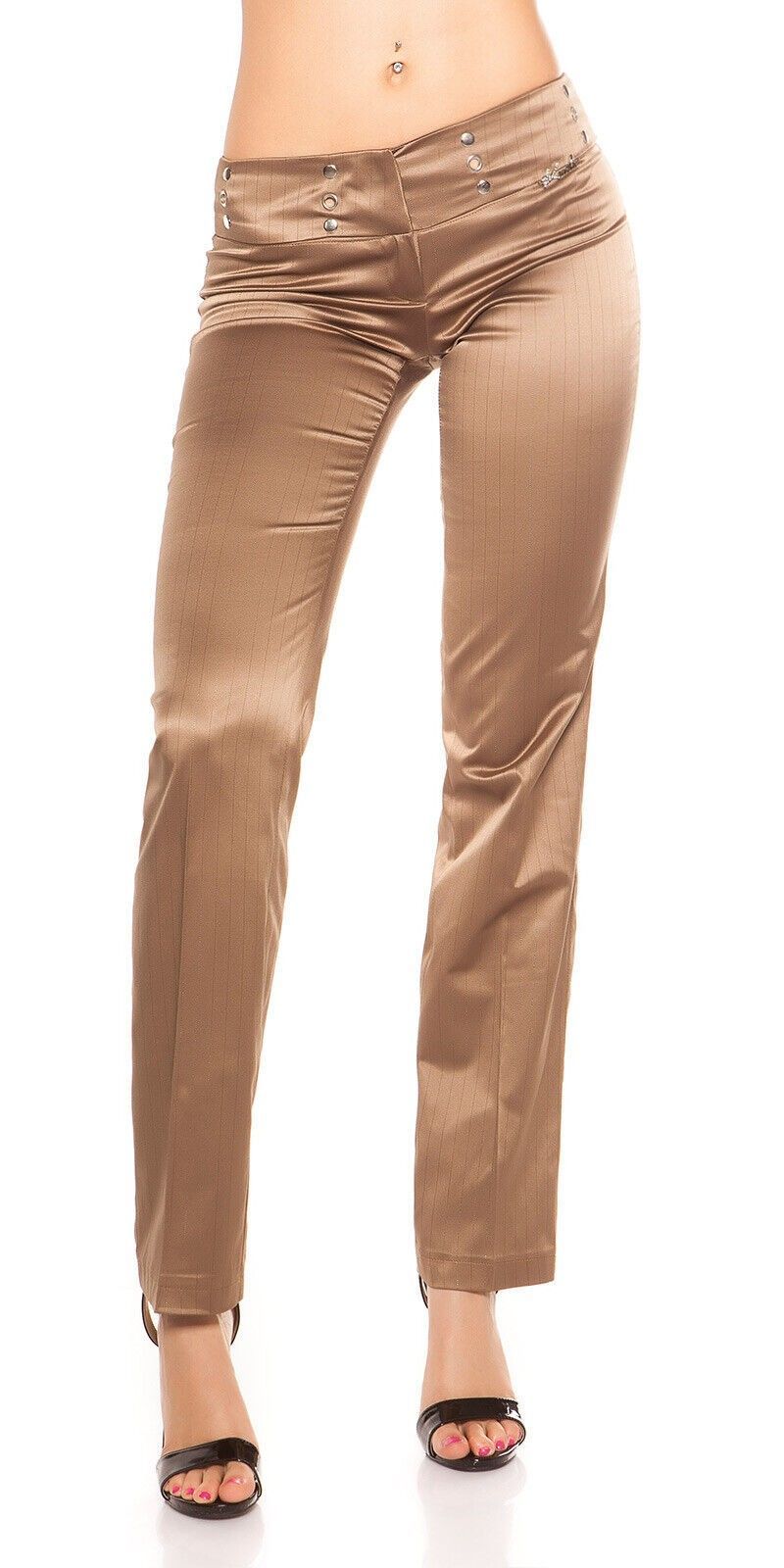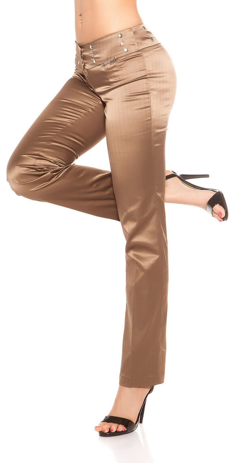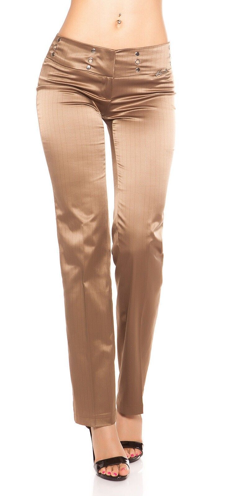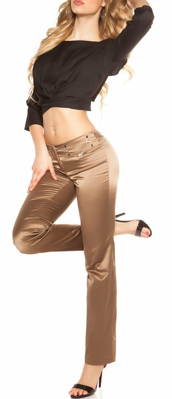 SeXy Miss Damen Business Satin Stoff Hose Nadelstreifen glanz 34 36 38 40 braun