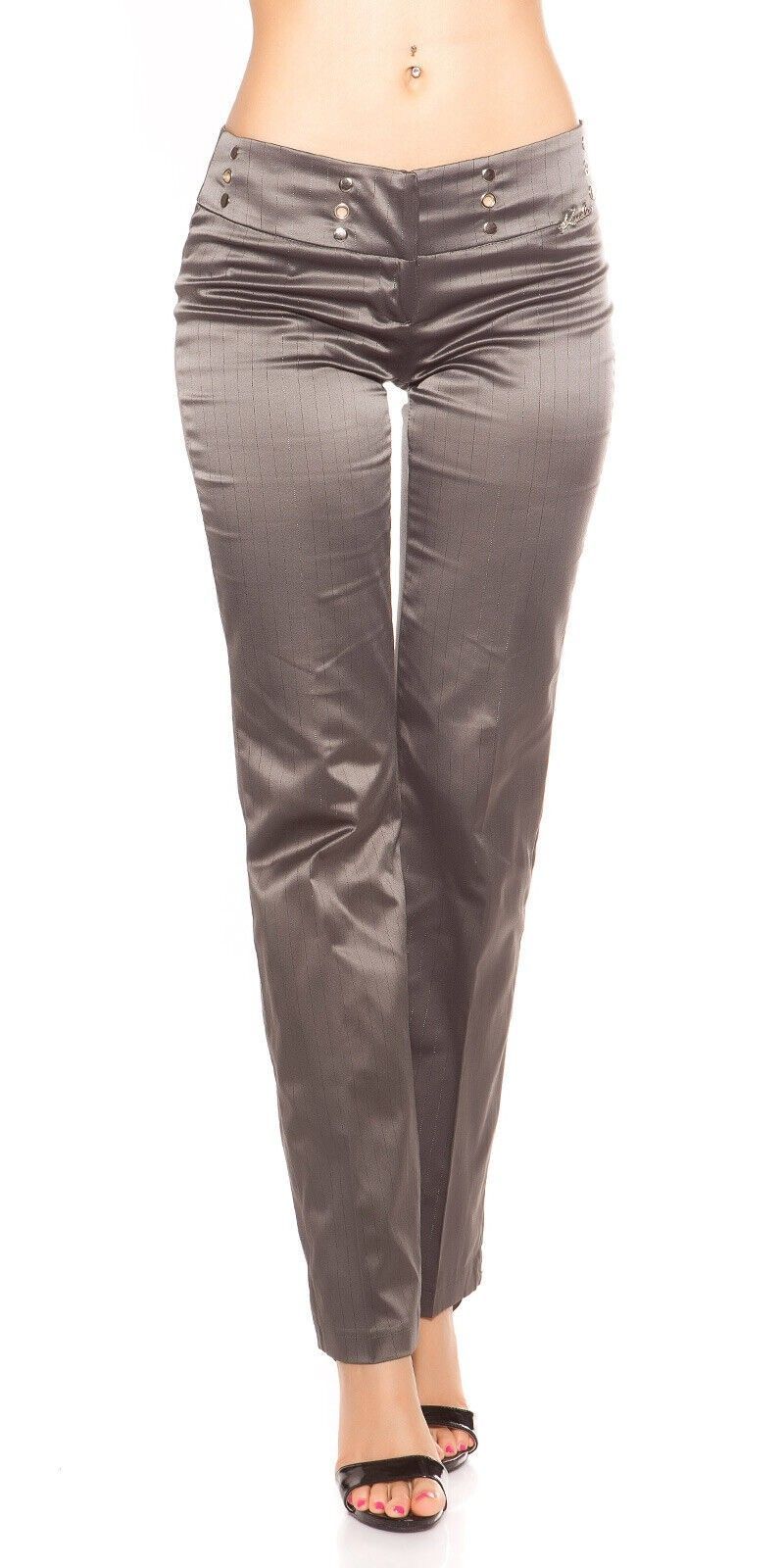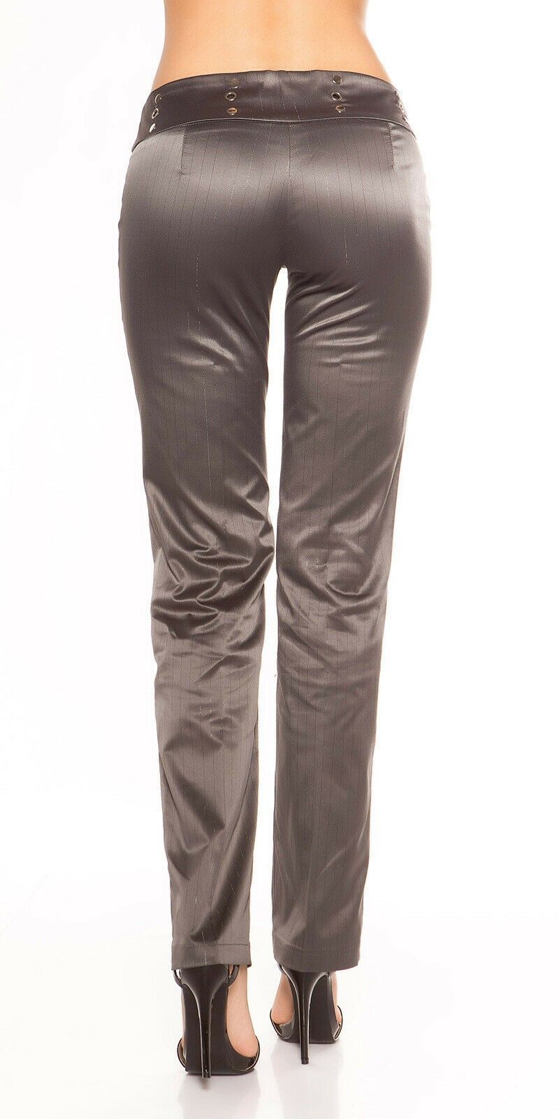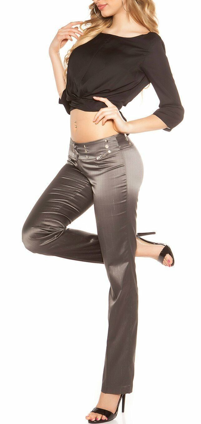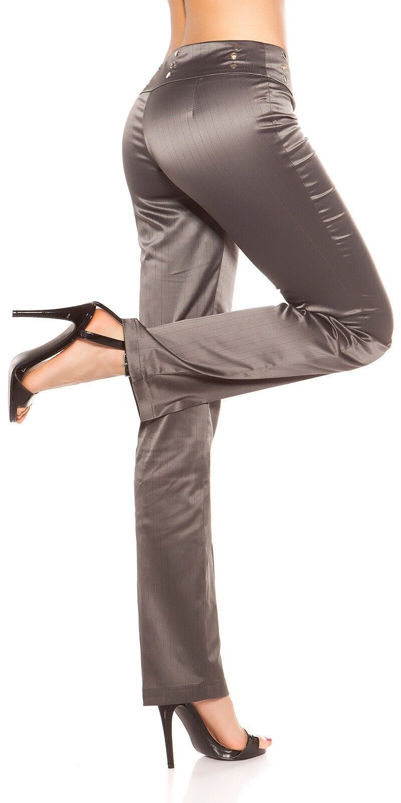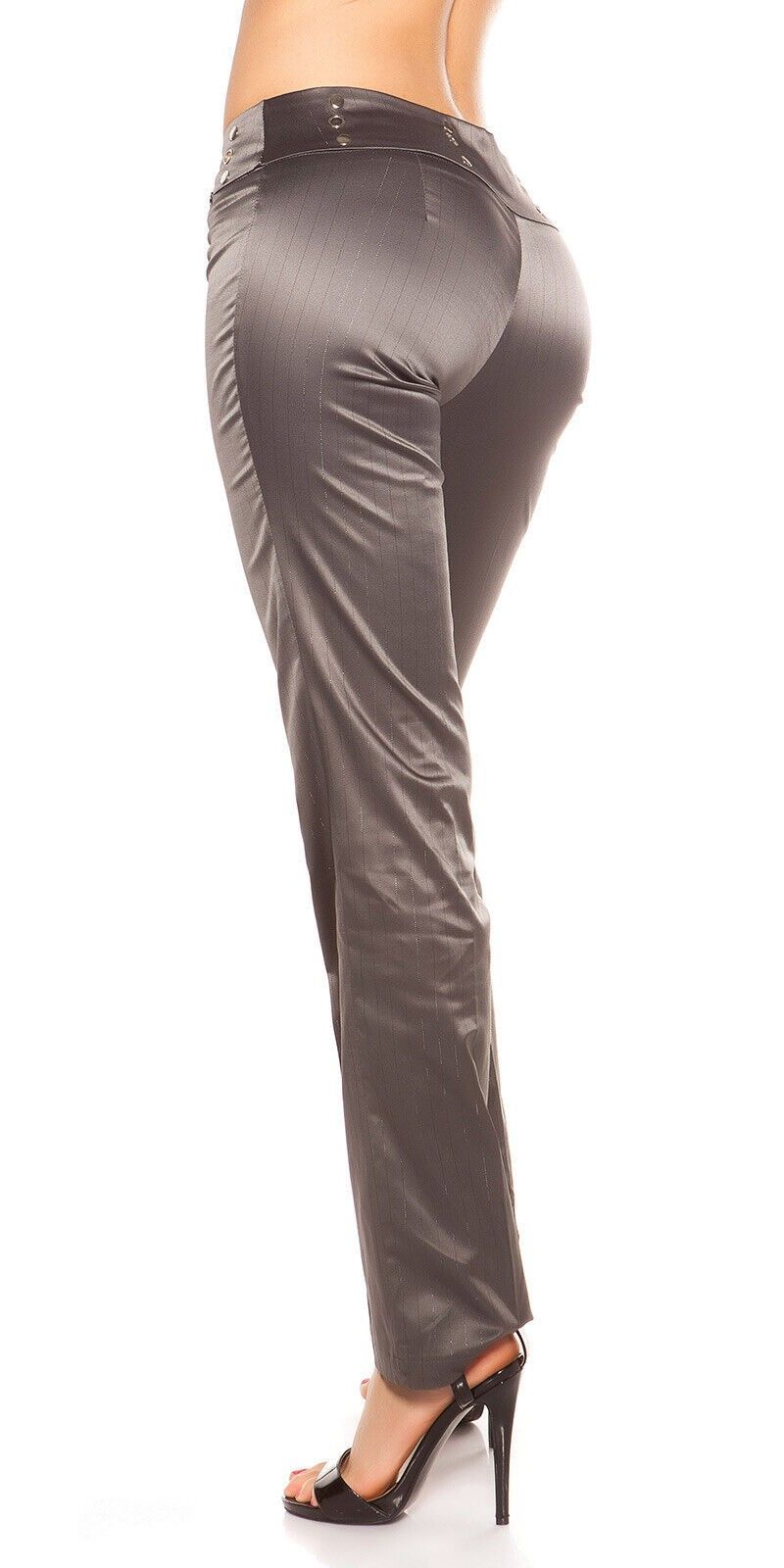 SeXy Miss Damen Business Satin Stoff Hose Nadelstreifen glanz 34 36 38 40 grau