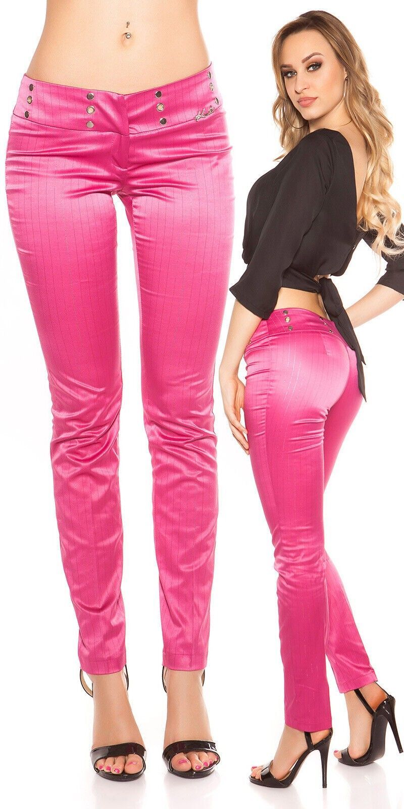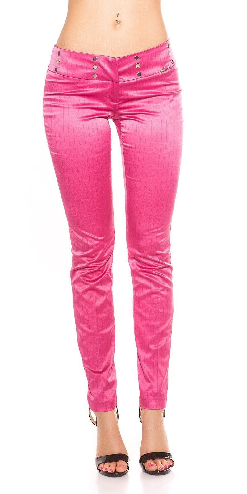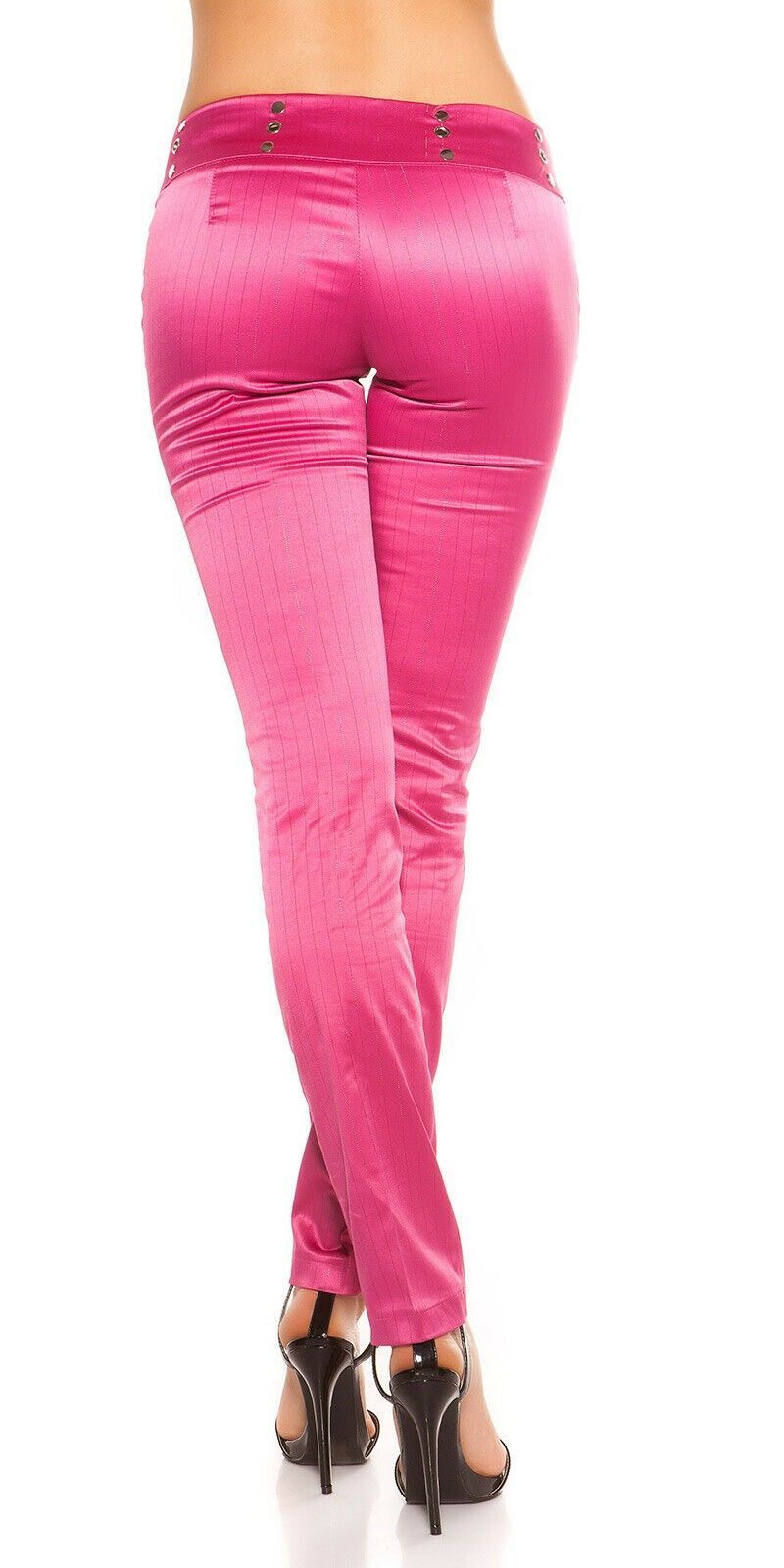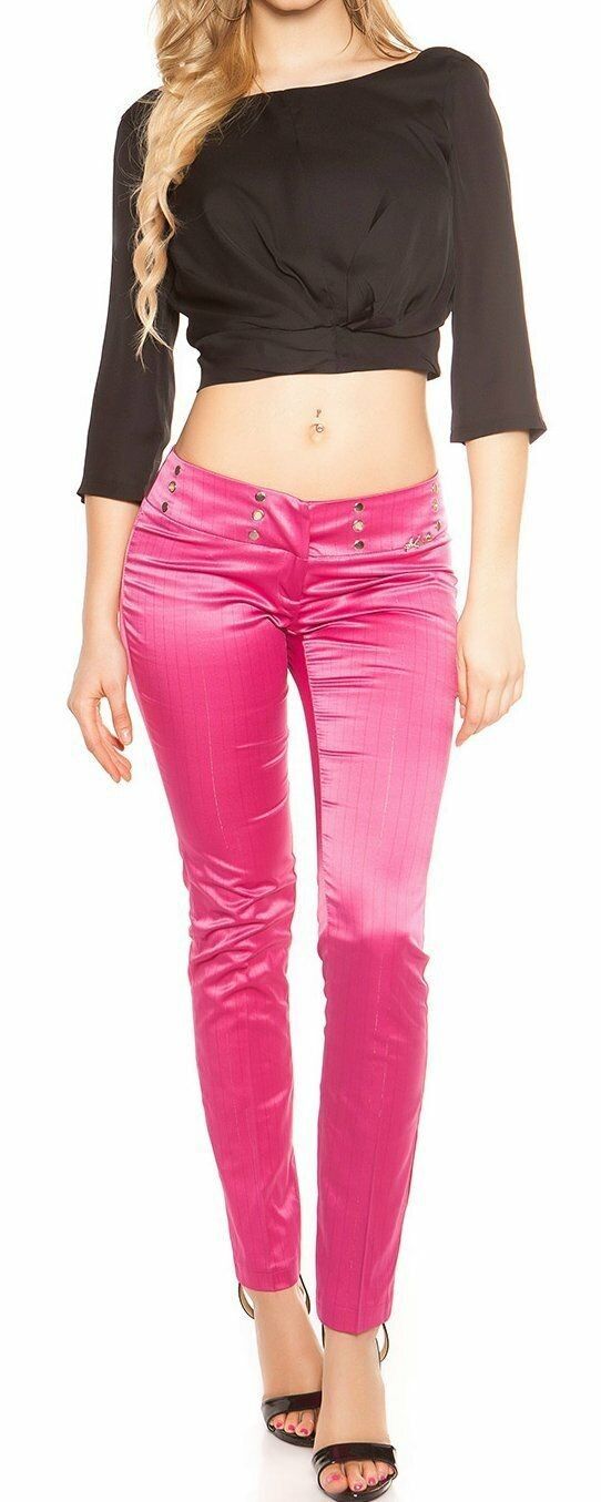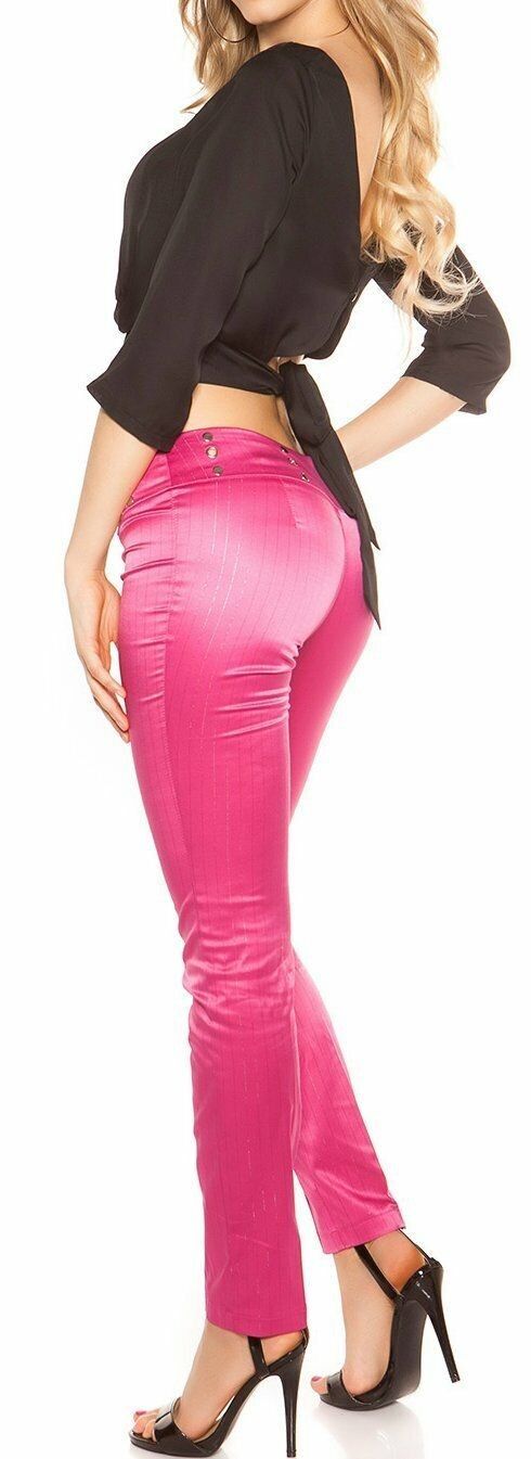 SeXy Miss Damen Business Satin Stoff Hose Nadelstreifen glanz 34 36 38 40 pink 01