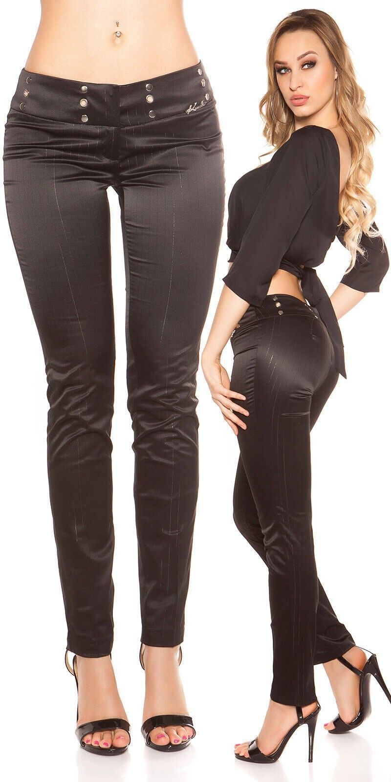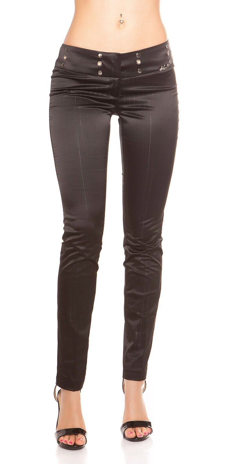 SeXy Miss Damen Business Satin Stoff Hose Nadelstreifen glanz 34 36 38 40 schwarz