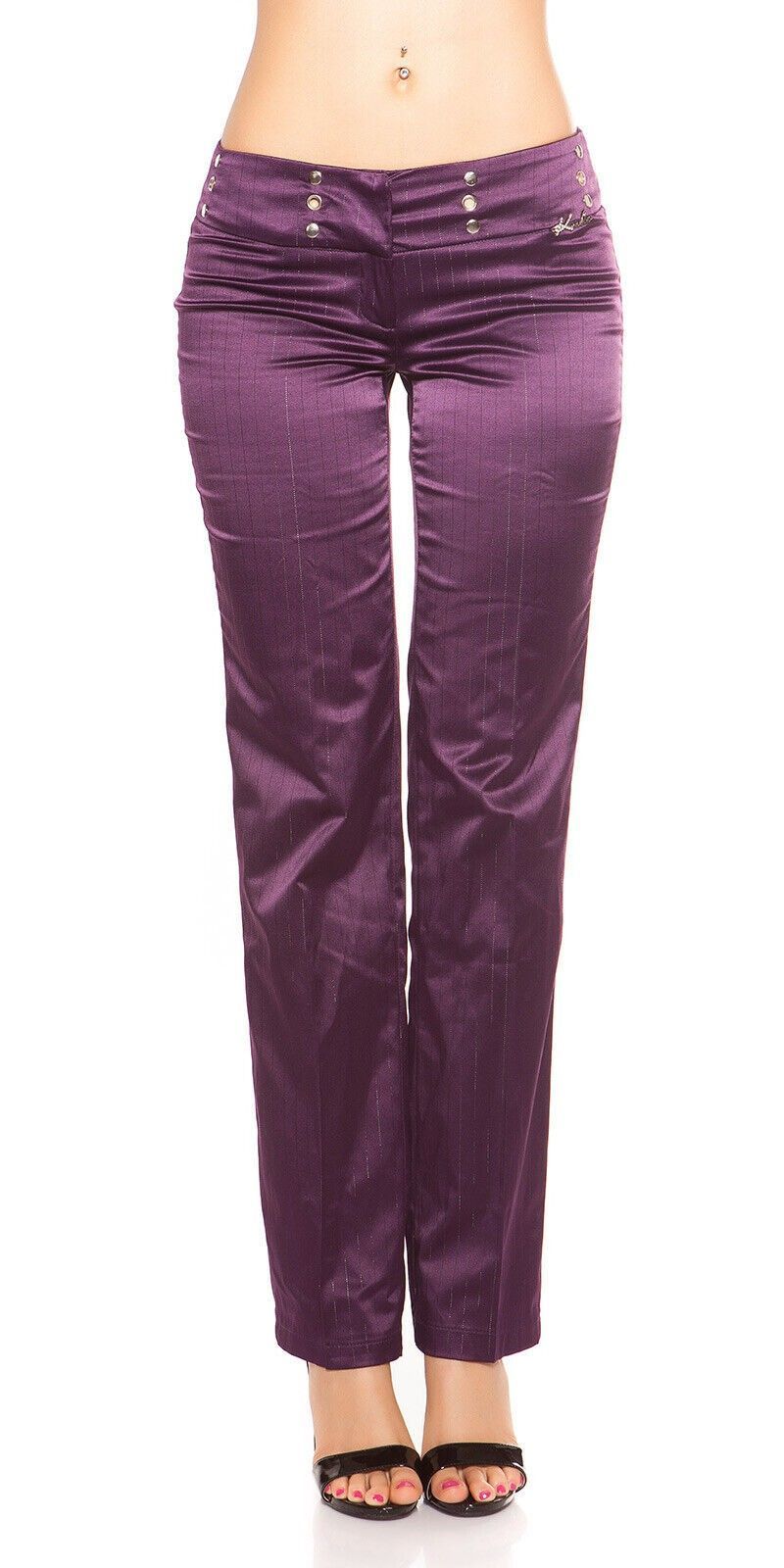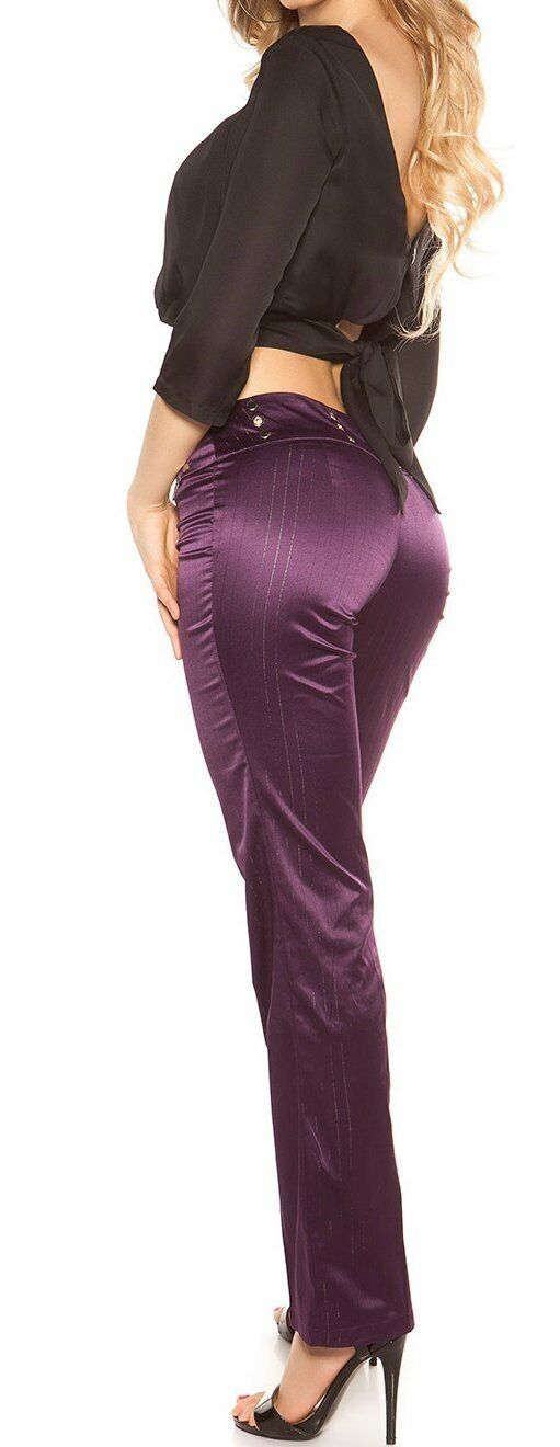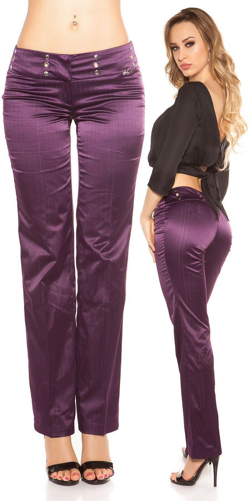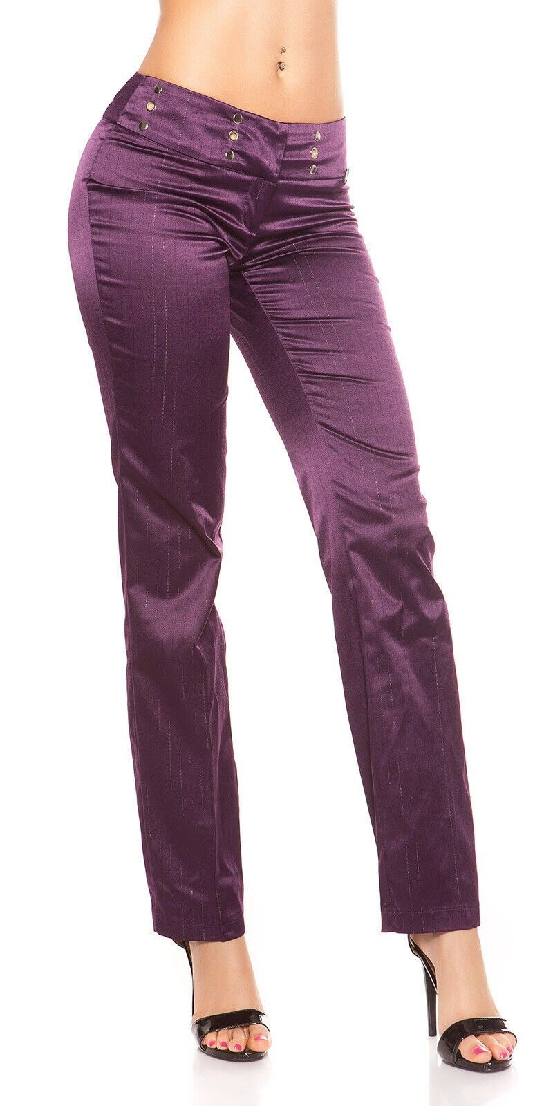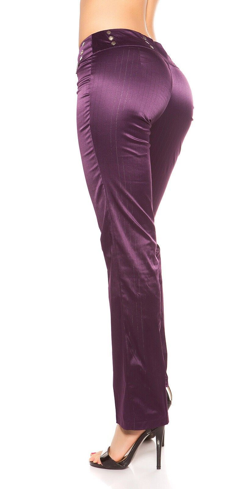 SeXy Miss Damen Business Satin Stoff Hose Nadelstreifen glanz 34 T36 lila