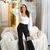 Stoff Business Hose Highwaist mit weitem Bein 2 Knöpfe und Reißverschluss 2 Eingrifftaschen Marlene Style Eye Catcher Hot & Sexy In-Style Look _____________________________ Im Artikel steht Französische Größe Maße in ungedehnten Zustand Bitte Maße beachten!! locker liegend einfache Weite in cm T