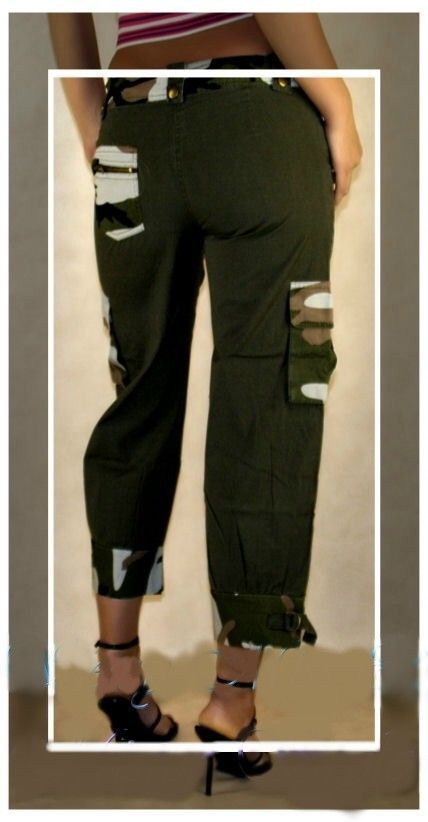 SeXy Miss Damen Camouflage Cargo Capri Hose 34 36 38 40 Tarnfleck Army Military