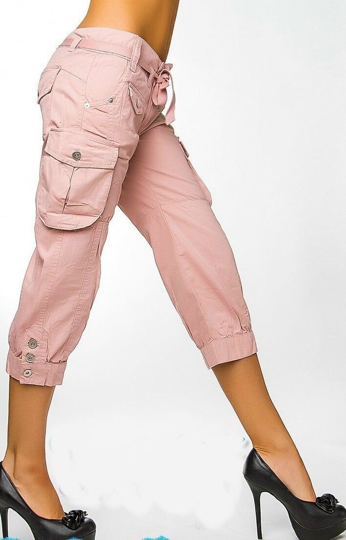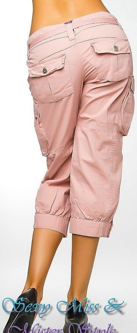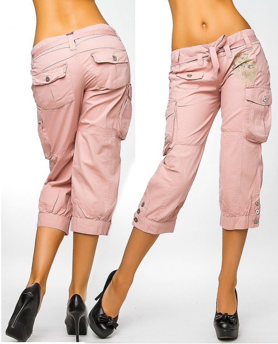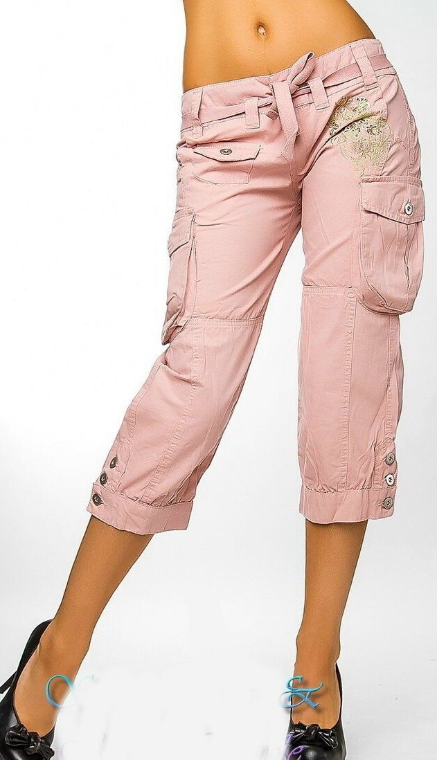 SeXy Miss Damen Cargo Capri Sommer Stoff Hose stickerei 34 36 38 40 alt rosa NEU