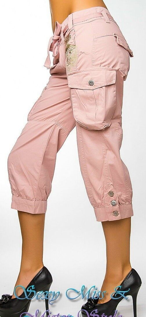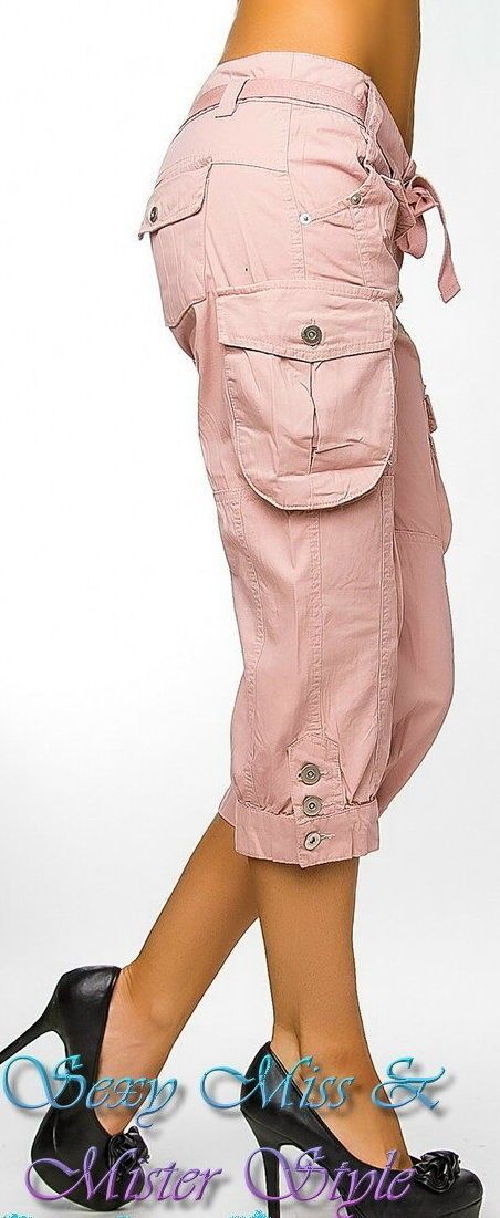 Trendstarke sommerliche Capri Cargo Hose Toller Look mit Taschen und Stickerei versehen Beinabschlüsse mit Knöpfen Gürtelschlaufen & Bindegürtel Eye Catcher Hot & Sexy In-Style Look _____________________________ Im Artikel steht Französische Größe Maße in ungedehnten Zustand locker liegend e