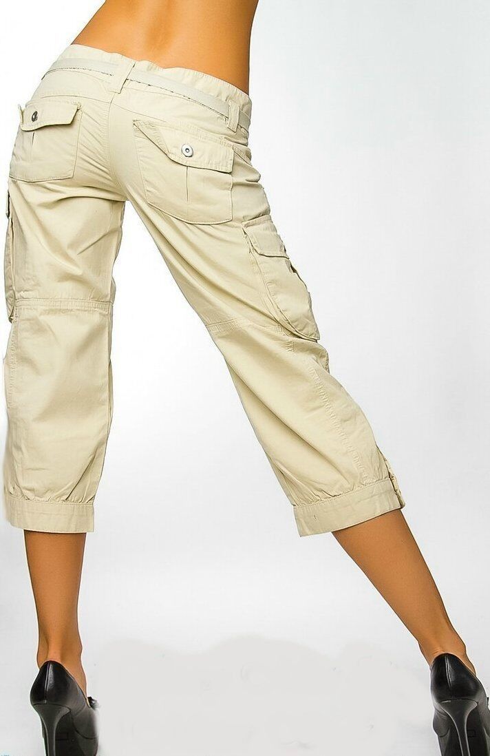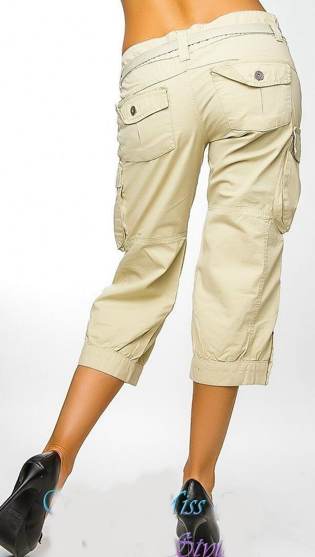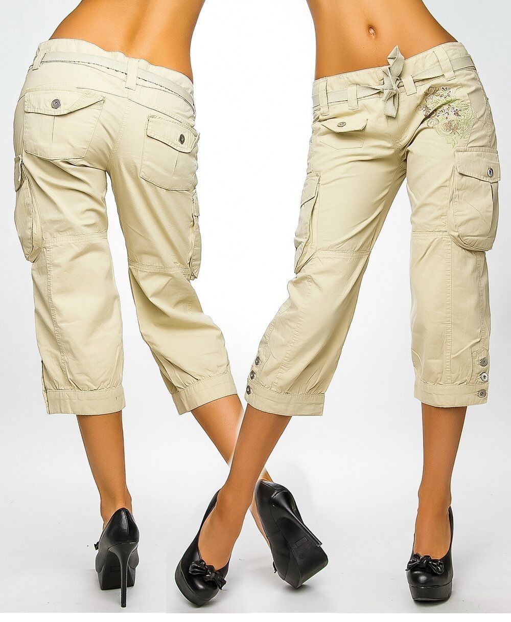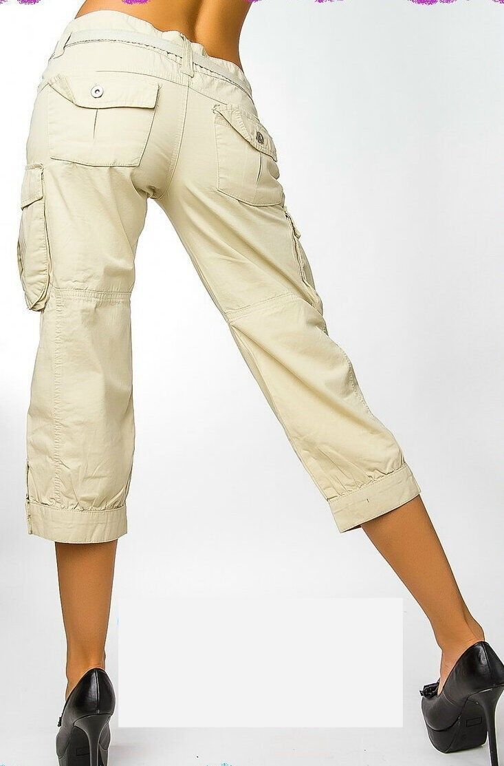 SeXy Miss Damen Cargo Capri Sommer Stoff Hose stickerei 34 36 38 40 beige NEU