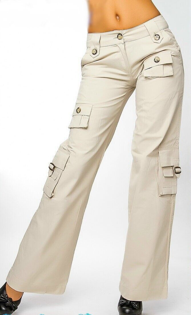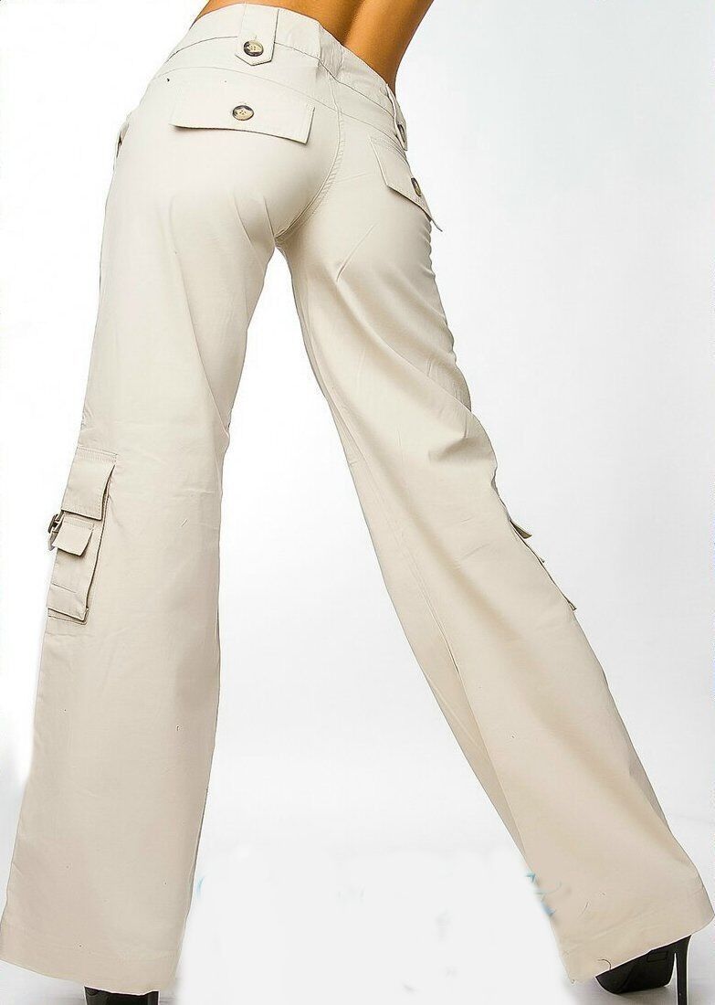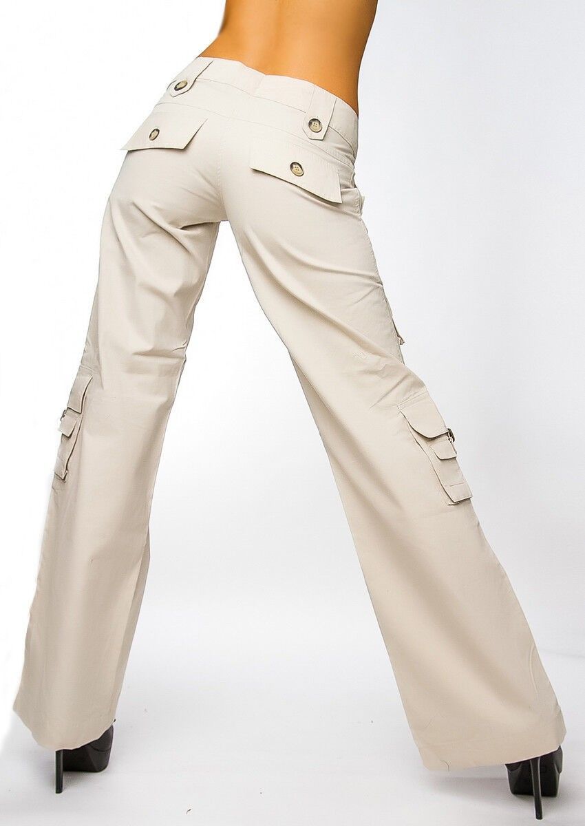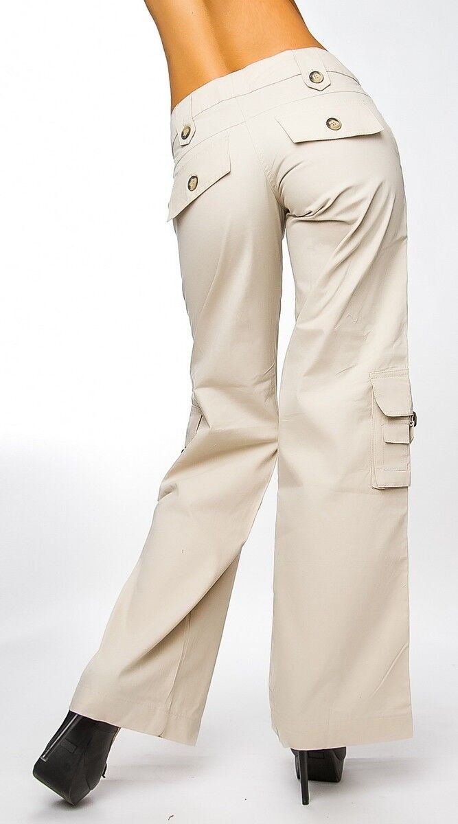 SeXy Miss Damen Cargo Style Taschen Sommer Stoff Hüft Hose T36 = 34 XS beige NEU