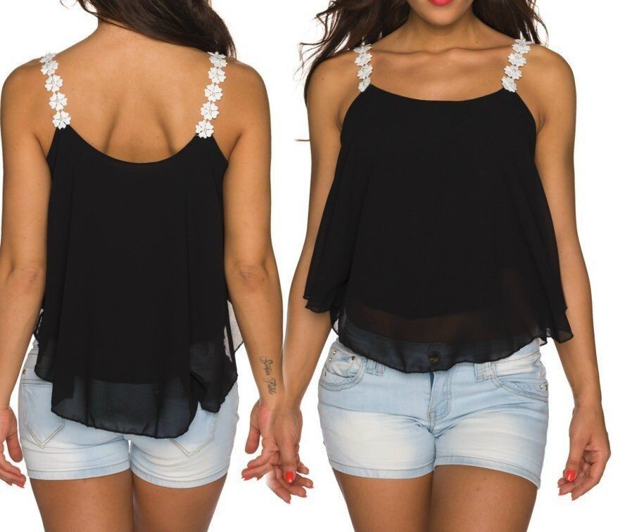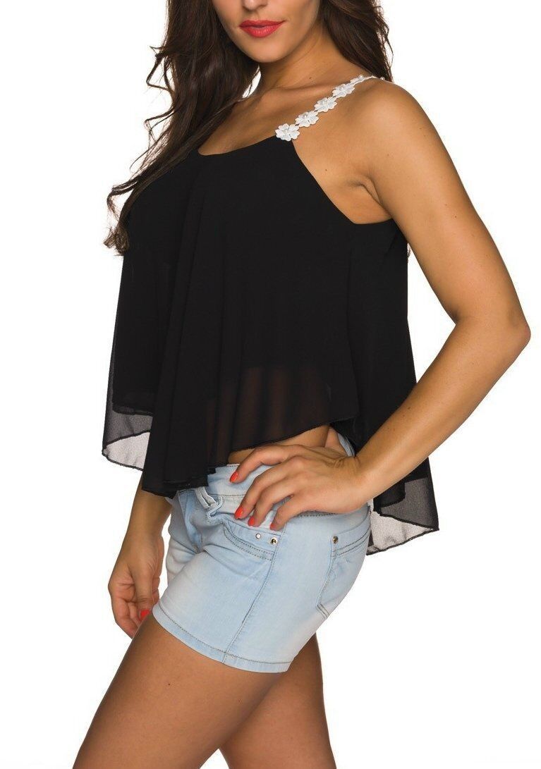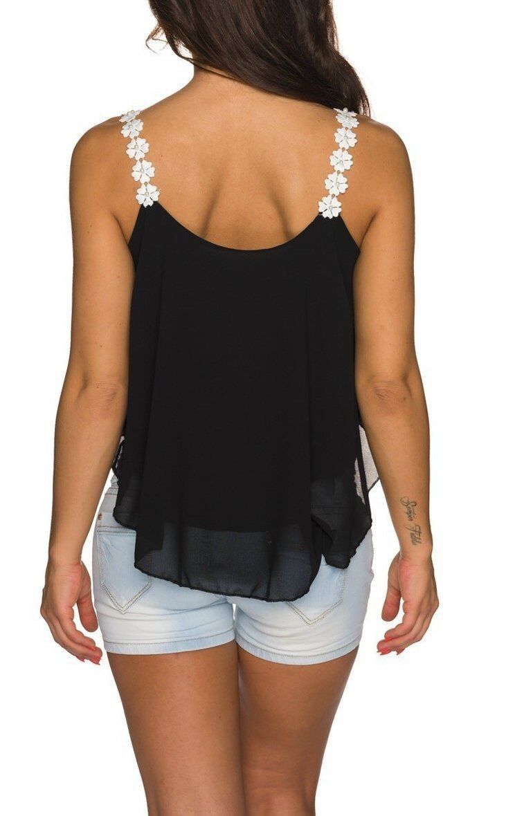 SeXy Miss Damen Chiffon Blumen Träger Girly Trendy Top 34/36/38 schwarz weiß NEU