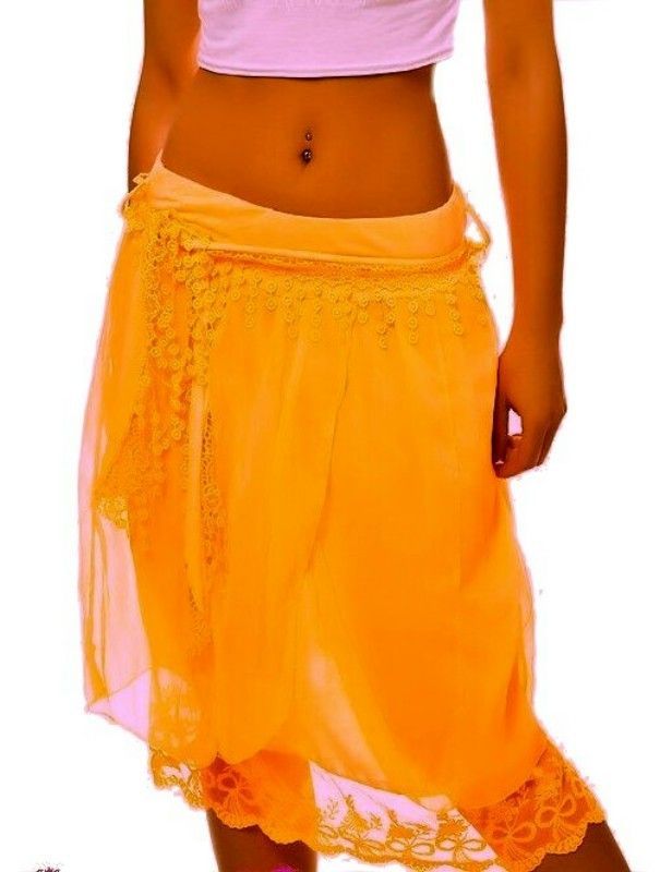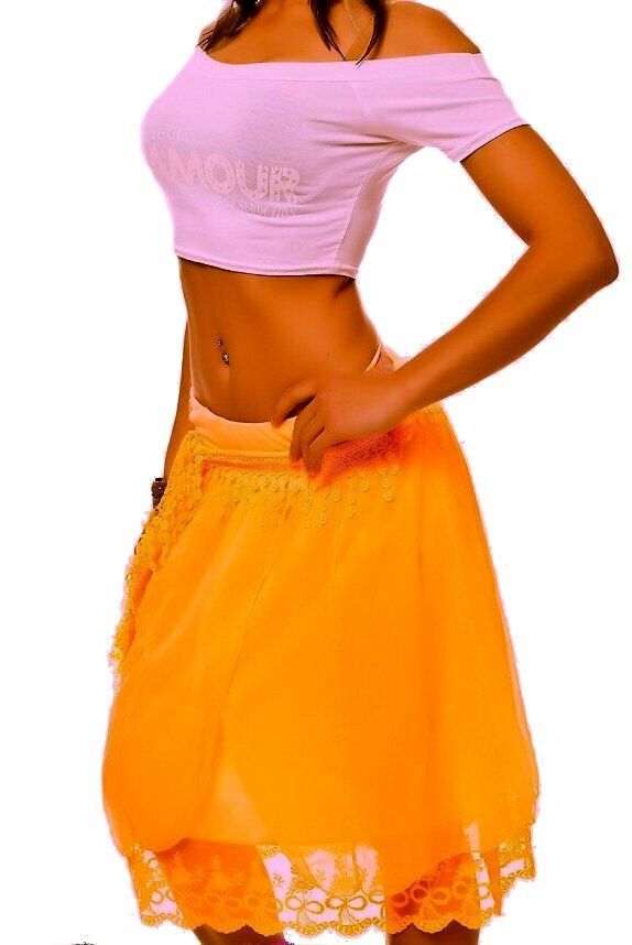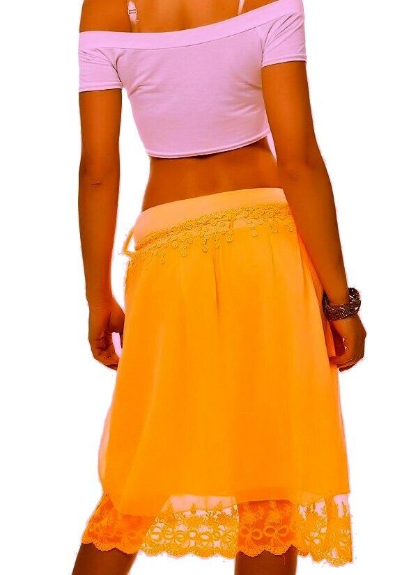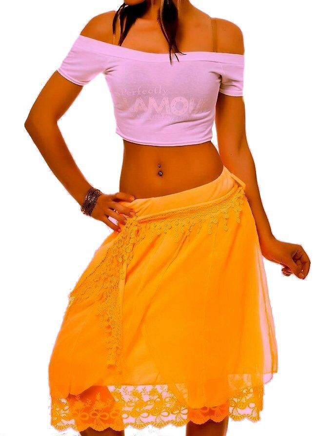 SeXy Miss Damen Chiffon knielanger Rock Spitze Binde Gürtel 34/36/38 Neon Orange
