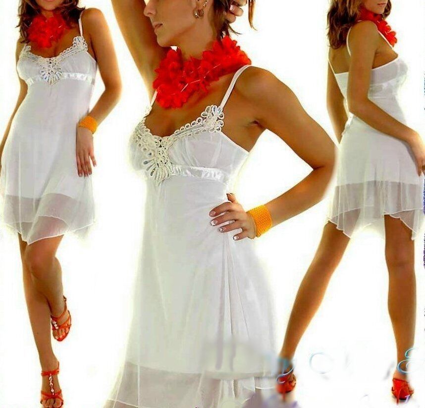 Sexy Miss Damen Chiffon Mini Kleid Babydoll Style Pailletten Silber 34 38 weiß