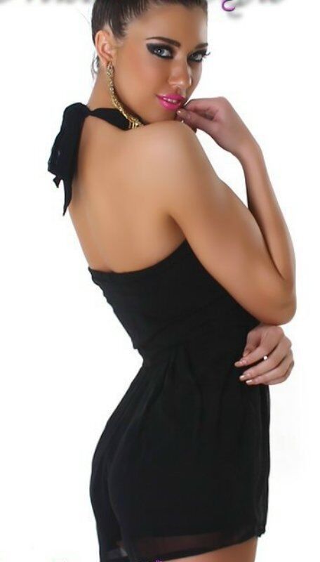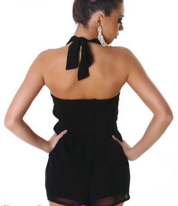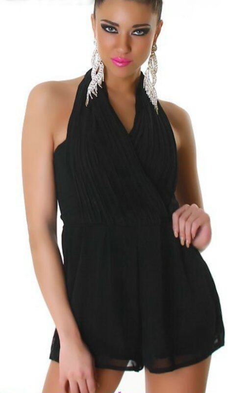 Sexy Miss Damen Clubbing Shorty kurz Overall Hose Einteiler Jumpsuit 34 36 38 schwarz