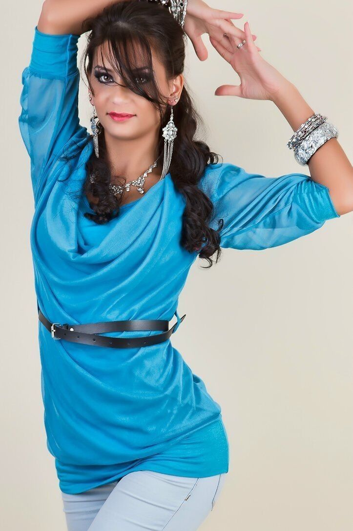 SeXy Miss Damen Double Wasserfall Shirt Chiffon Top 34/36 36/38 Gürtel h. blau