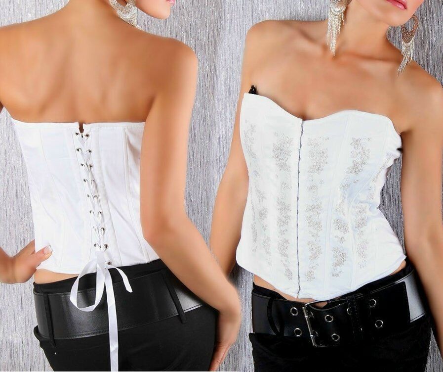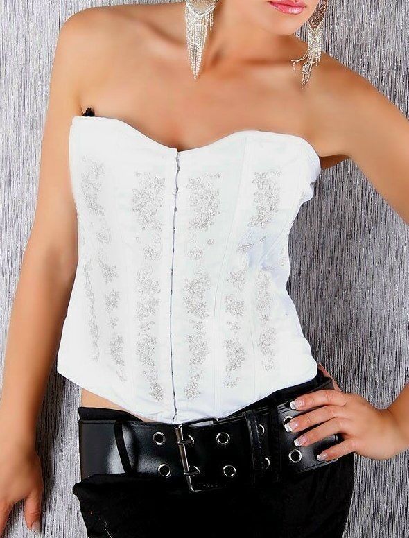 Sexy Miss Damen EdeL Corsage Steinchen Stickerei weiß silber 36 Top NEU