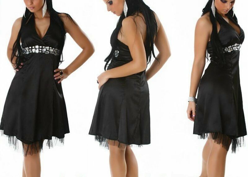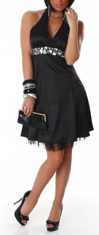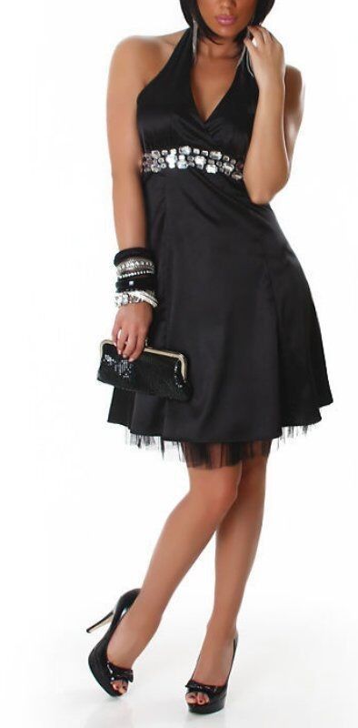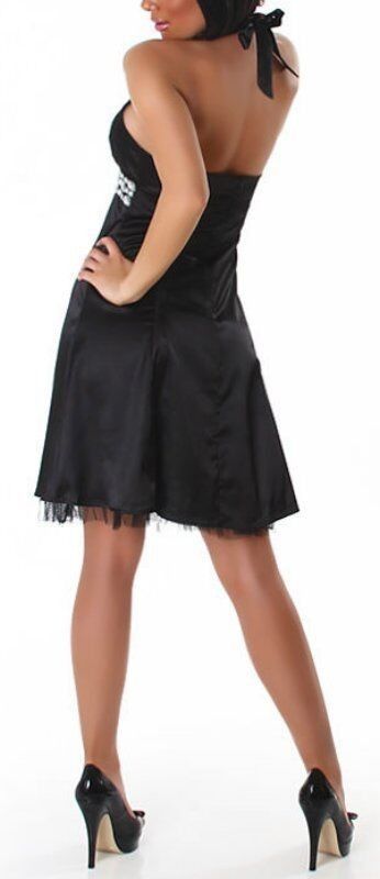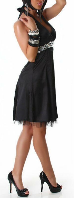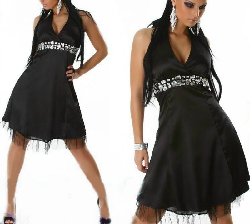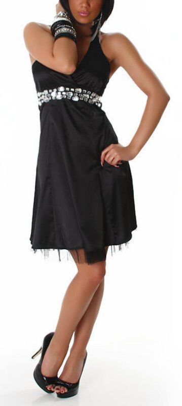Sexy Miss Damen Edel Satin Abend Kleid Funkel Steine Dress 34/36 36/38 schwarz