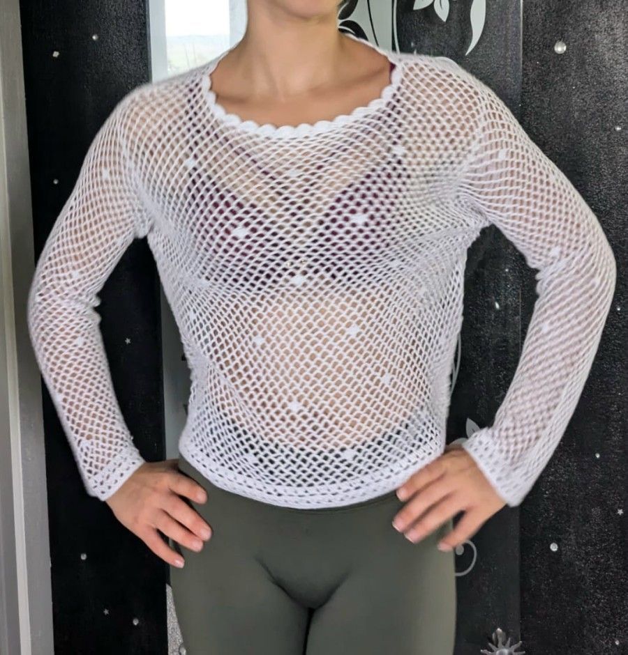 Sexy Miss Damen Fein Loch Strick Pullover S M L weiß schwarz Netz Top Neu