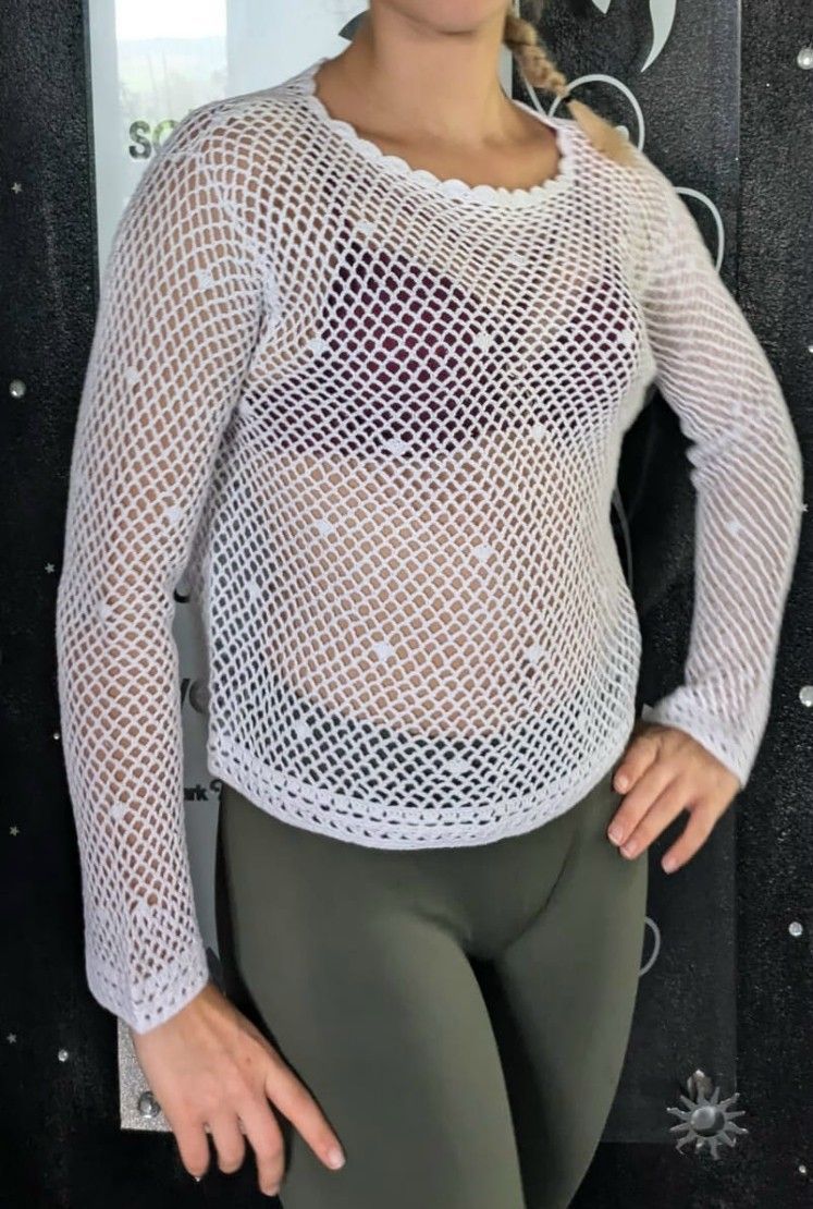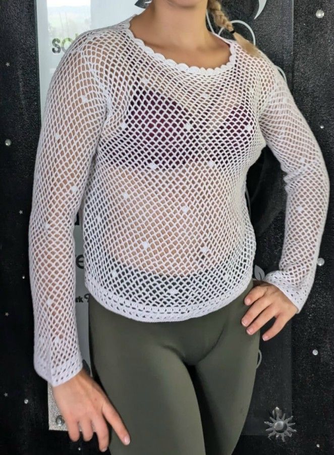 Netz Pullover Loch Strick Pulli mit sexy Durchblick lockerer Schnitt elastisches Material Eye Catcher Hot & Sexy In-Style Look _____________________________ Im Artikel steht Größe Maße in ungedehnten Zustand locker liegend einfache Weite in cm Toleranz + - 2 cm S Brustweite von Unterarm zu Unter