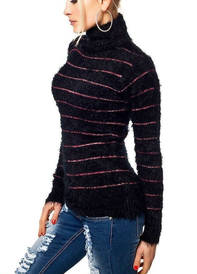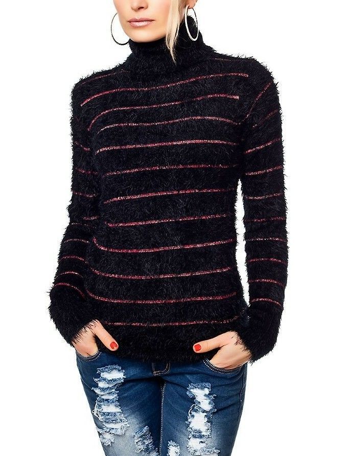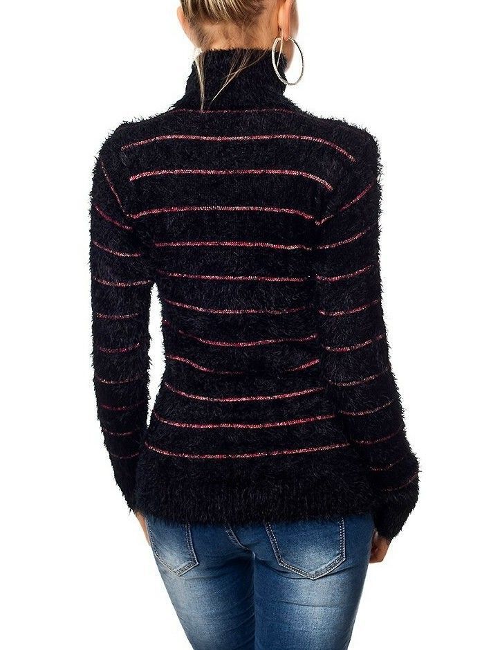 Kuschel Flausch Pulli Langhaar Rollkragen Pullover Strickpullover mit eingearbeiteten Glitzer Lurex Streifen sehr flauschiges stretchig elastisches Material Eye Catcher Hot & Sexy In-Style Look _____________________________ Einheitsgröße - Uni - Ohne Größe Maße in ungedehnten Zustand locker lieg