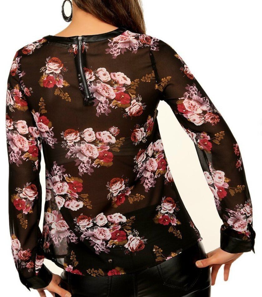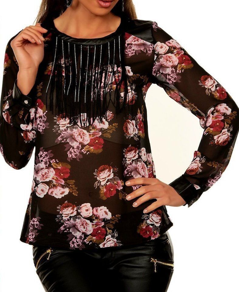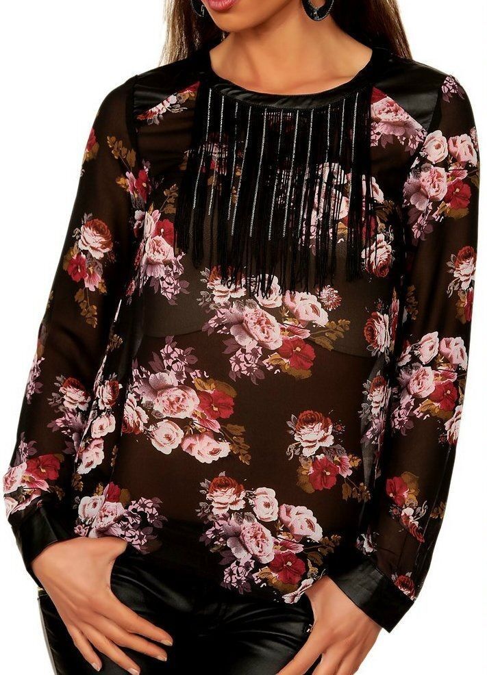 SeXy MiSS Damen Flower Bluse Top Chiffon Fransen Look S 34 M 36 L 38 Bunt schwarz