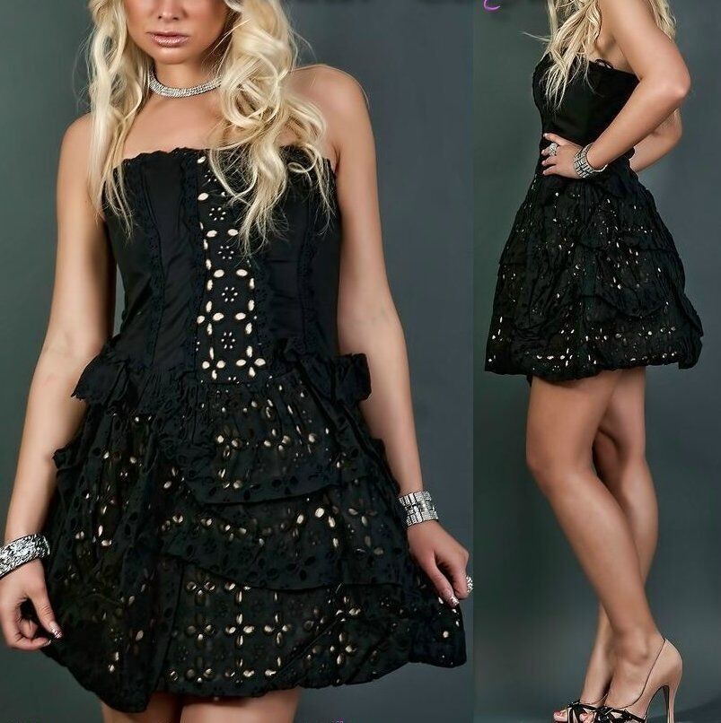 SeXy Miss Damen Girl Bandeau Corsage Kleid Volant Spitze 34 36 schwarz creme NEU