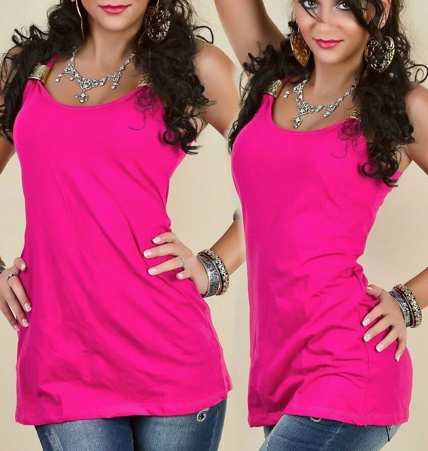 SeXy MiSS Damen Girl Long Tank Top Tunika Style 34/36/38 NEU pink gold Element